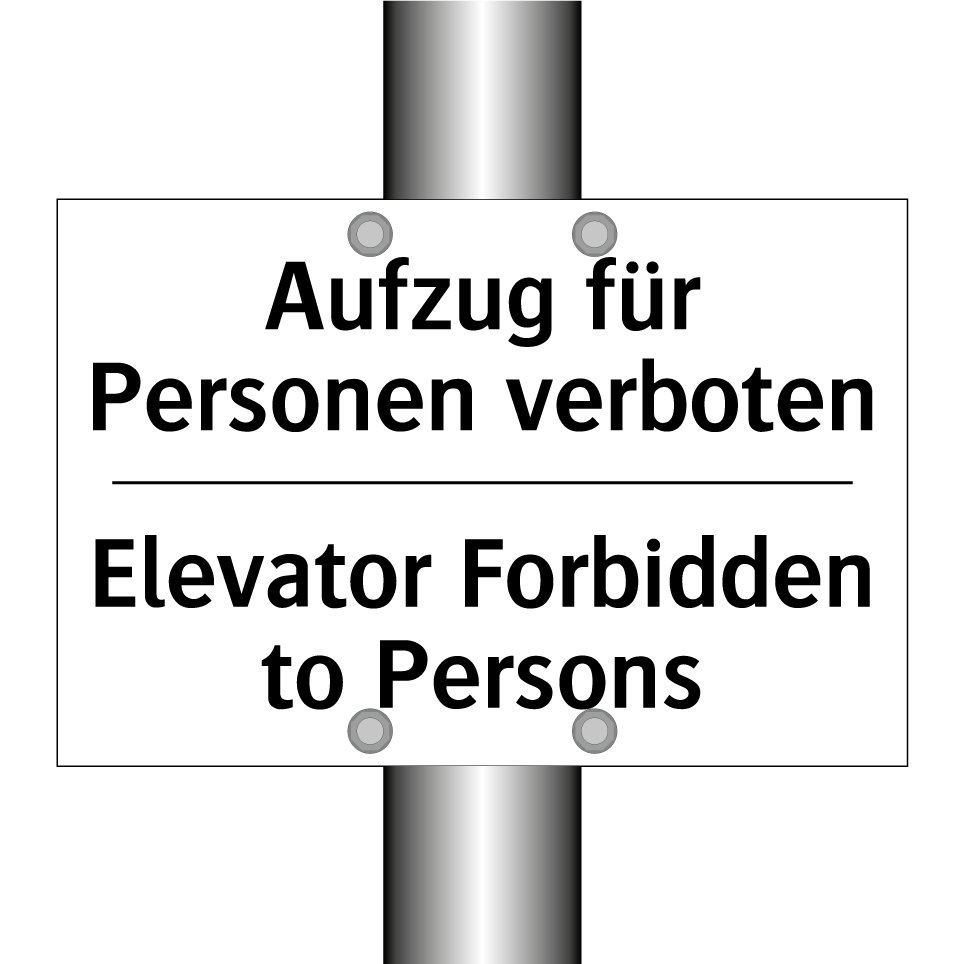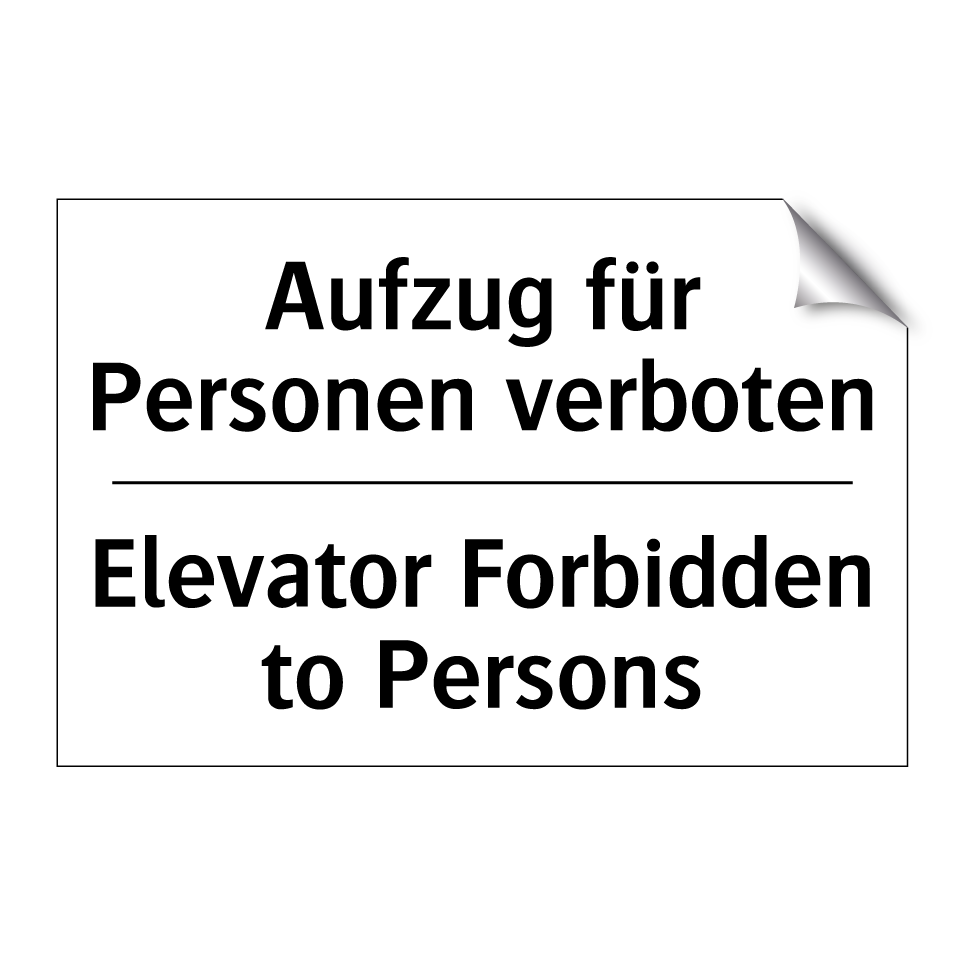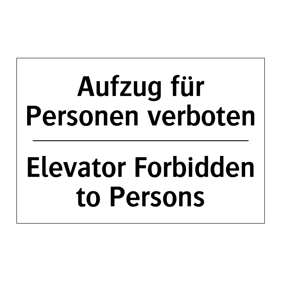 Zweisprachiges Verbotsschild mit deutschem Text Aufzug für Personen verboten und englischem Text Elevator Forbidden to Persons