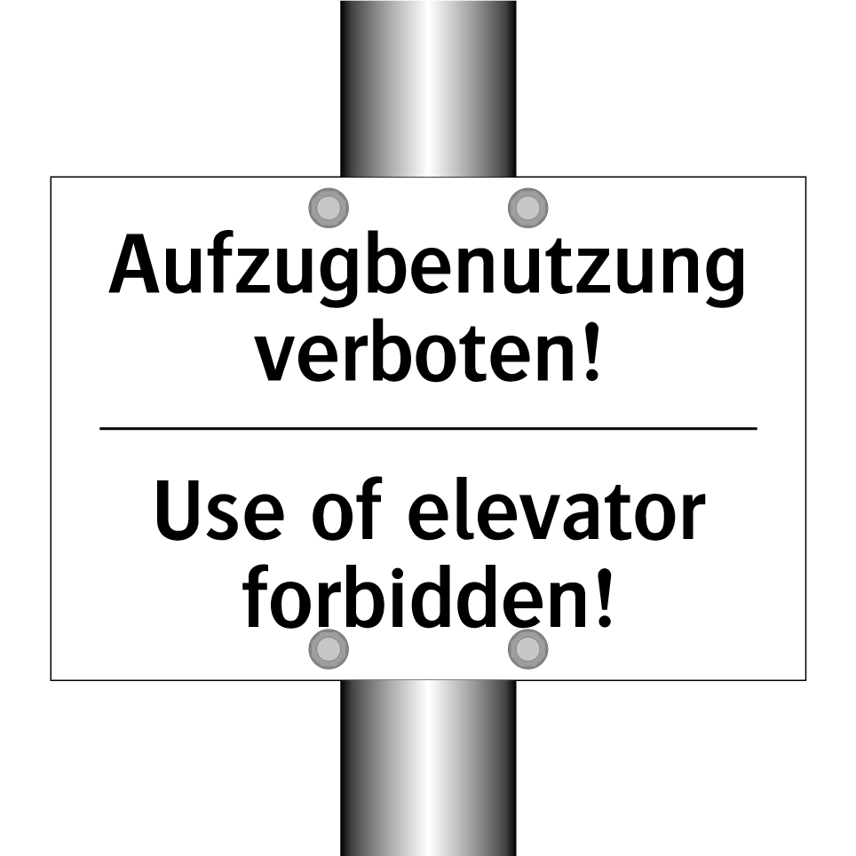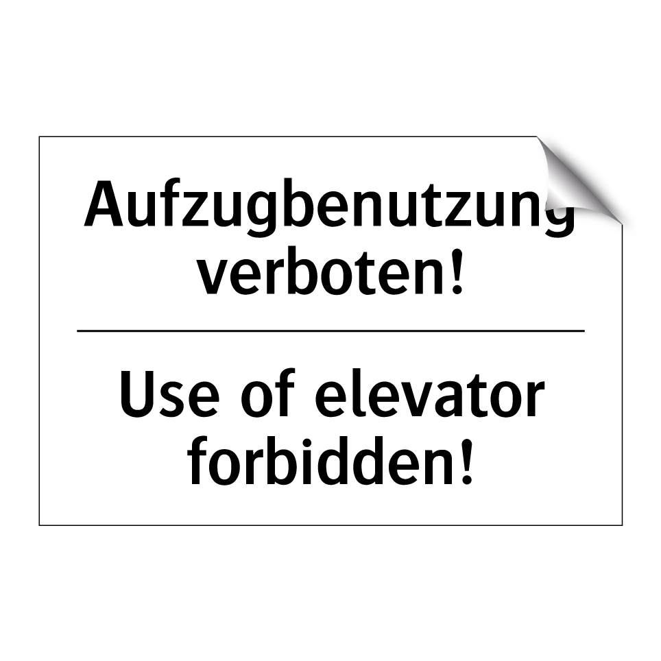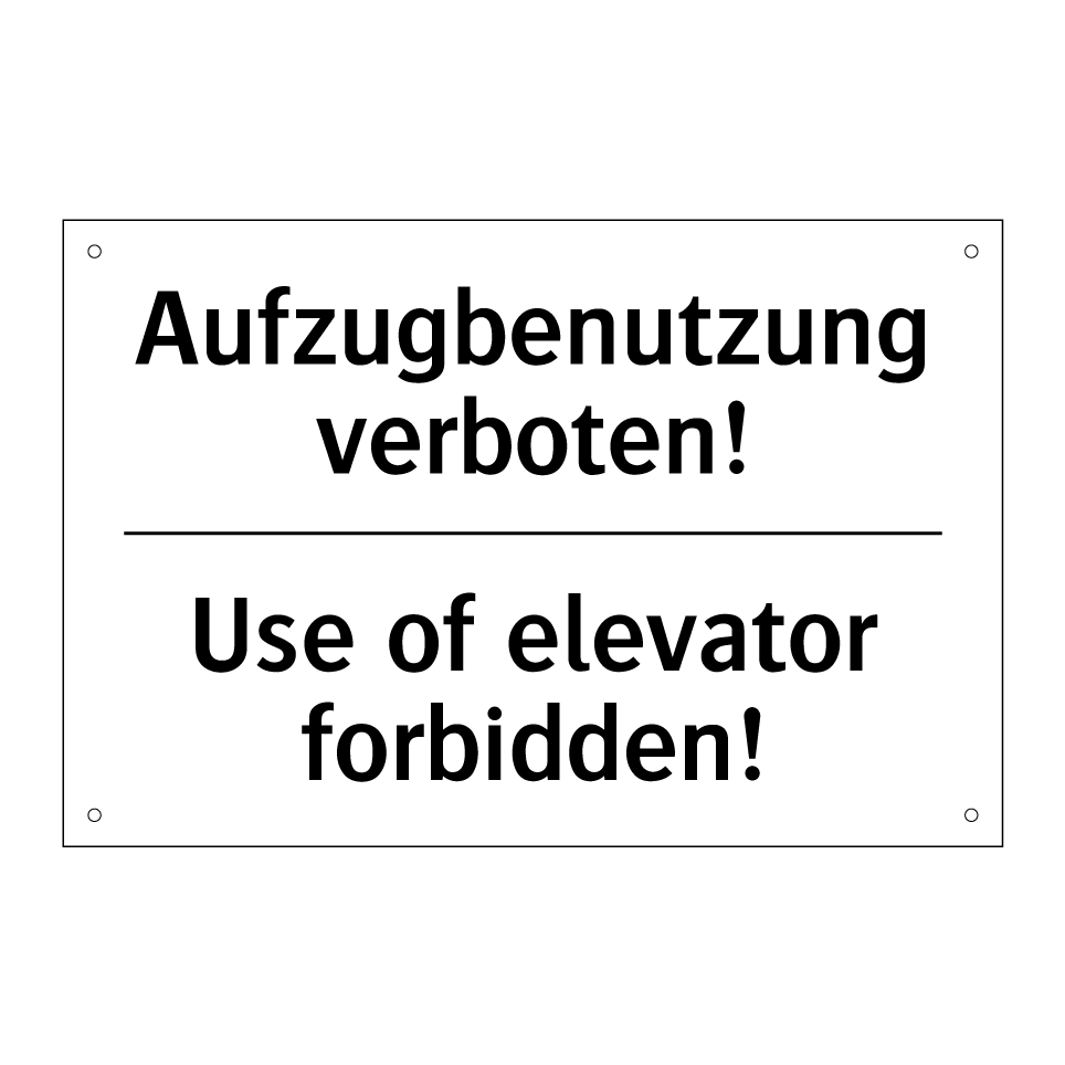 Zweisprachiges Verbotsschild mit deutschem Text Aufzugbenutzung verboten! und englischem Text Use of elevator forbidden!