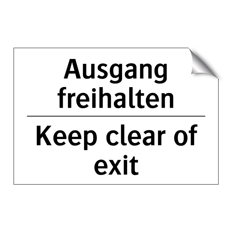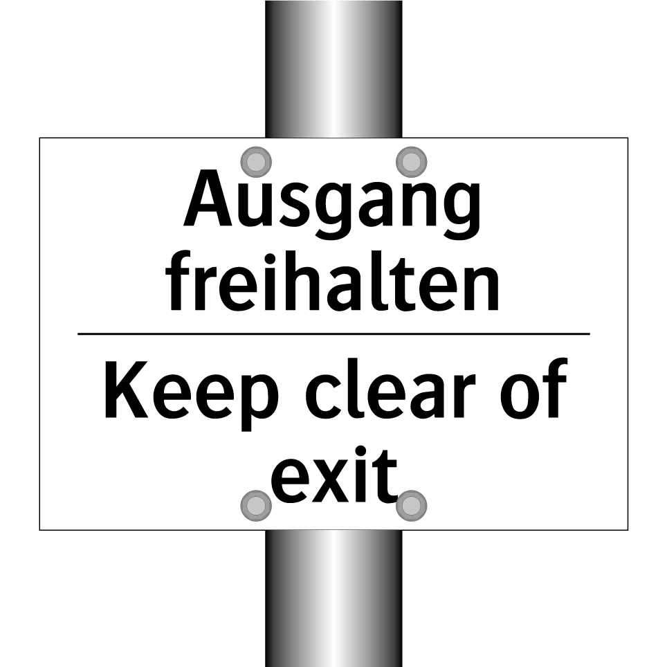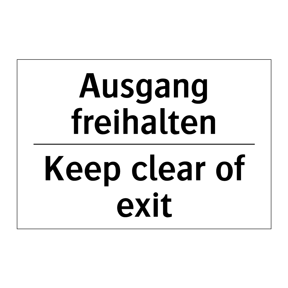 Zweisprachiges Verbotsschild mit deutschem Text Ausgang freihalten und englischem Text Keep clear of exit