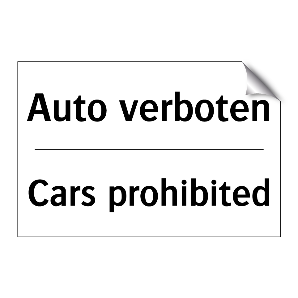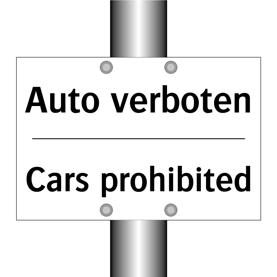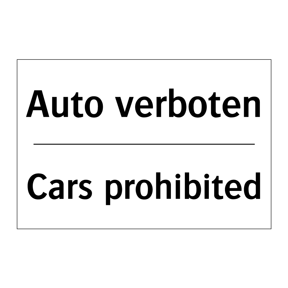Zweisprachiges Verbotsschild mit deutschem Text Auto verboten und englischem Text Cars prohibited