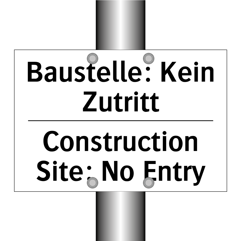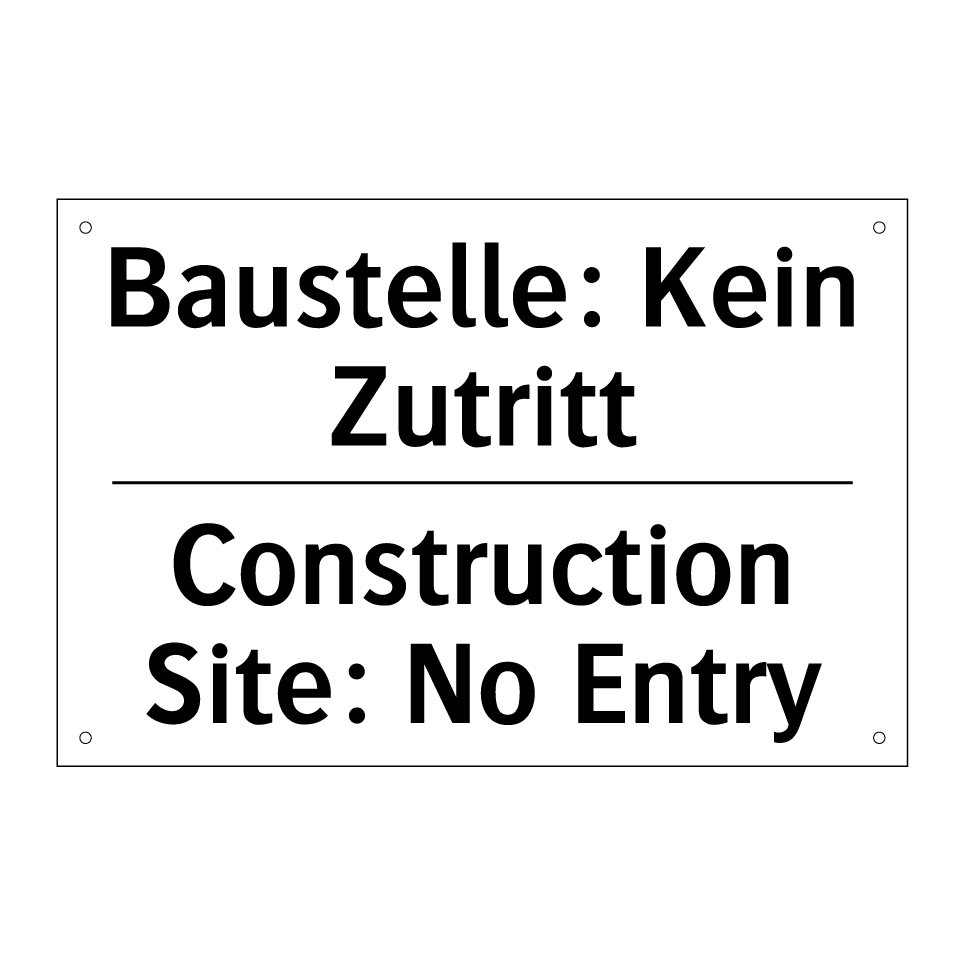 Zweisprachiges Verbotsschild mit deutschem Text Baustelle: Kein Zutritt und englischem Text Construction Site: No Entry