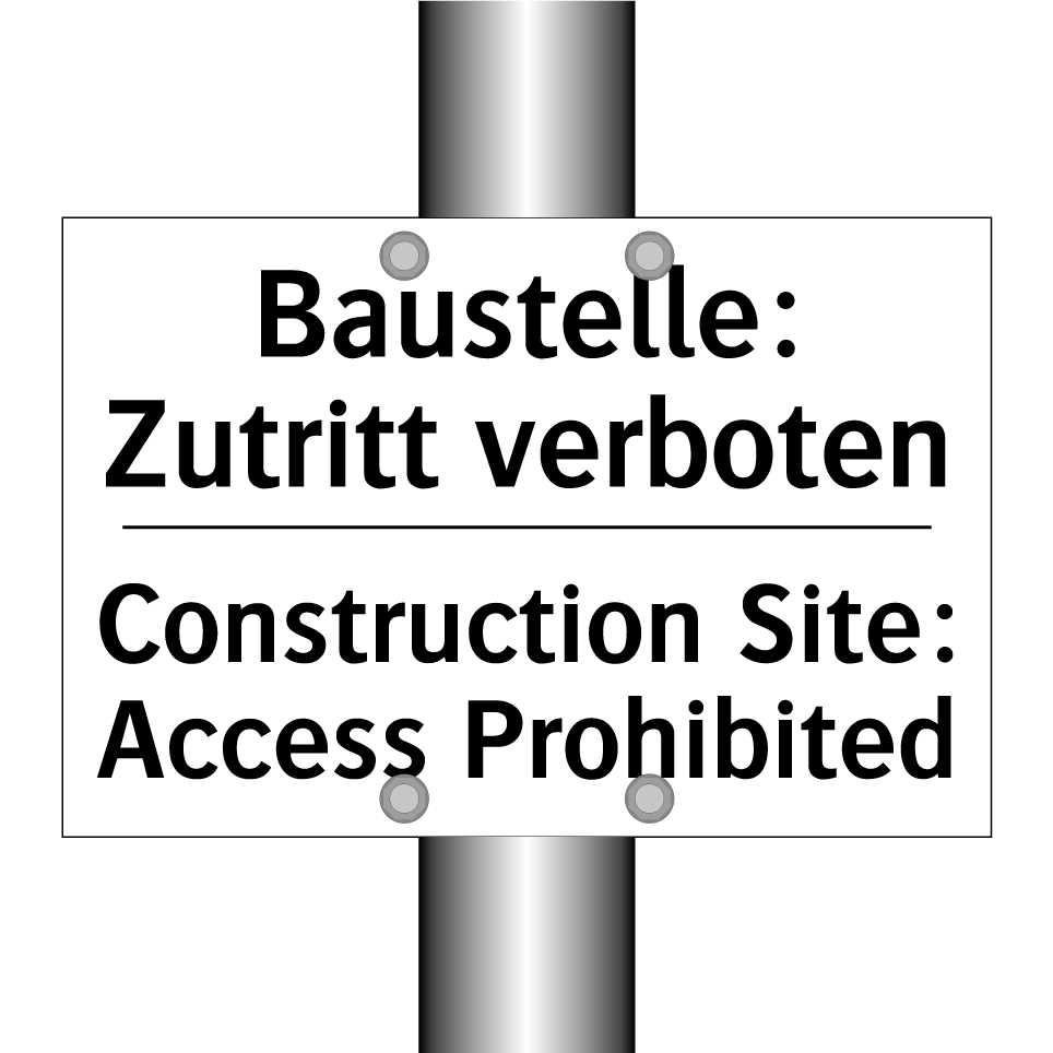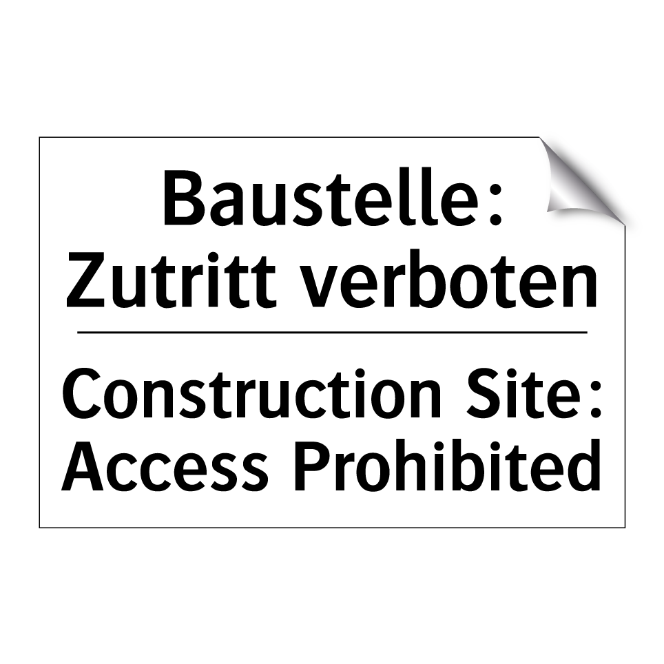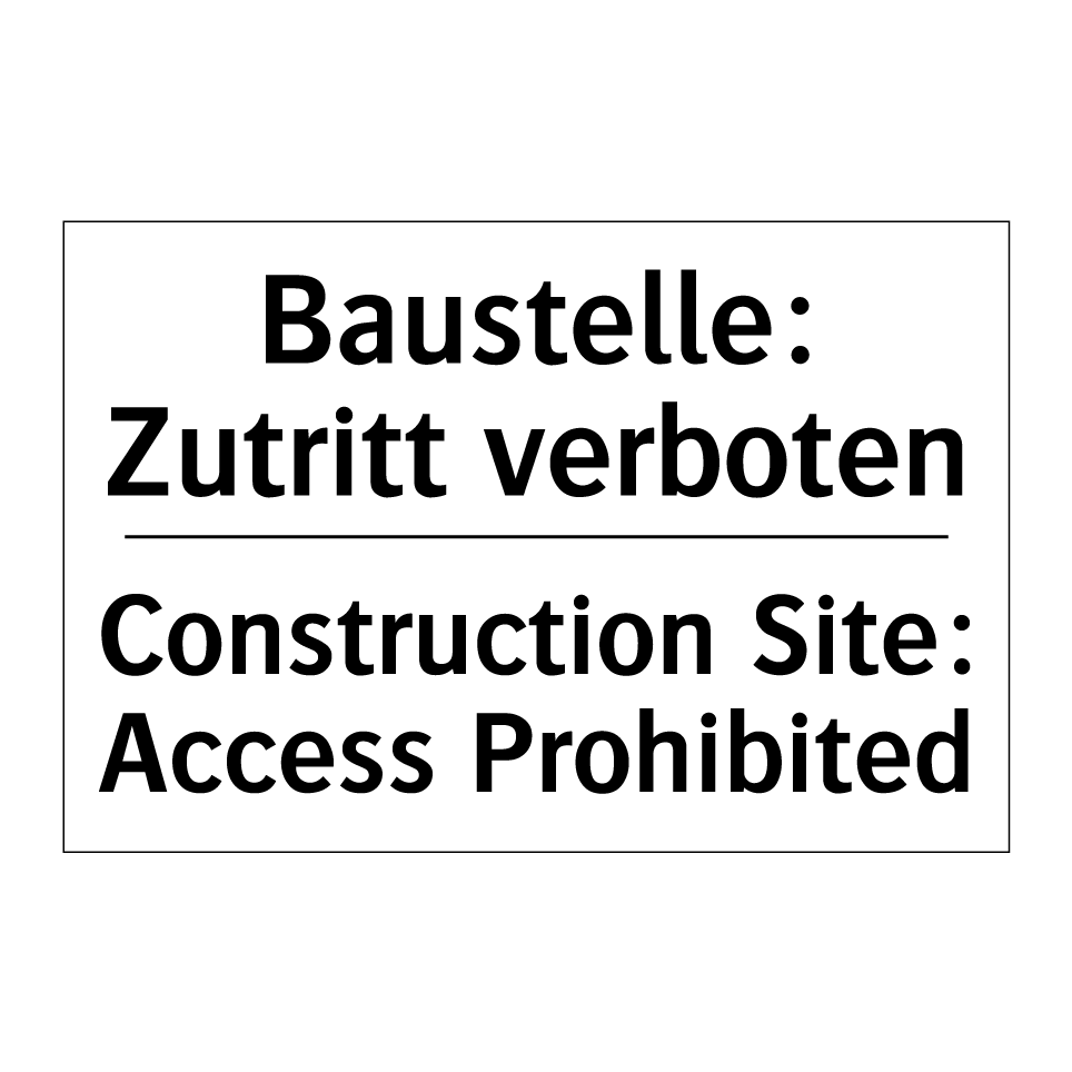 Zweisprachiges Verbotsschild mit deutschem Text Baustelle: Zutritt verboten und englischem Text Construction Site: Access Prohibited