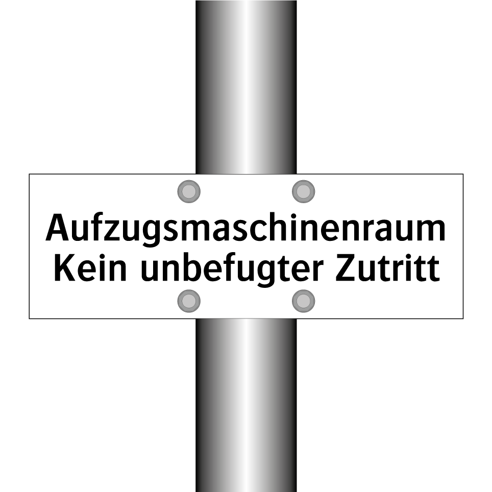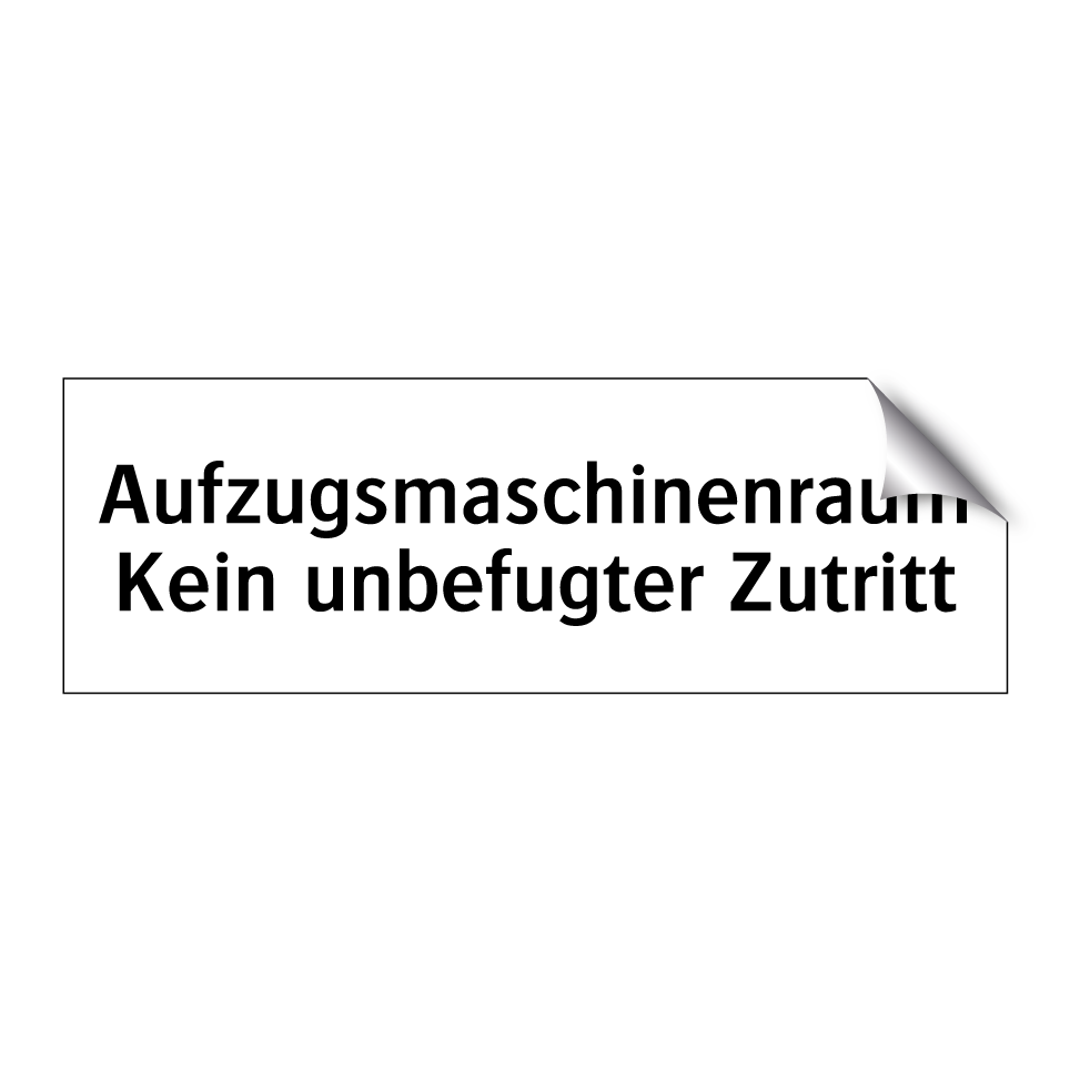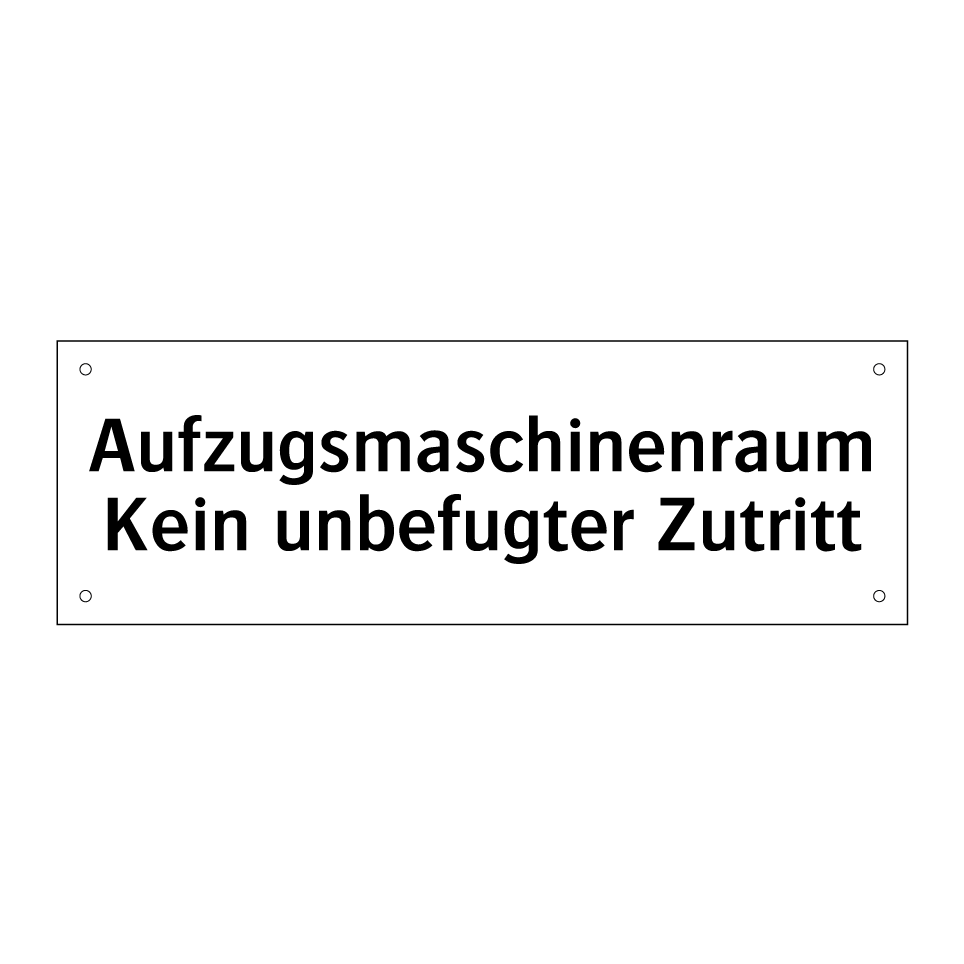 Verbotsschild mit dem Text Aufzugsmaschinenraum Kein unbefugter Zutritt