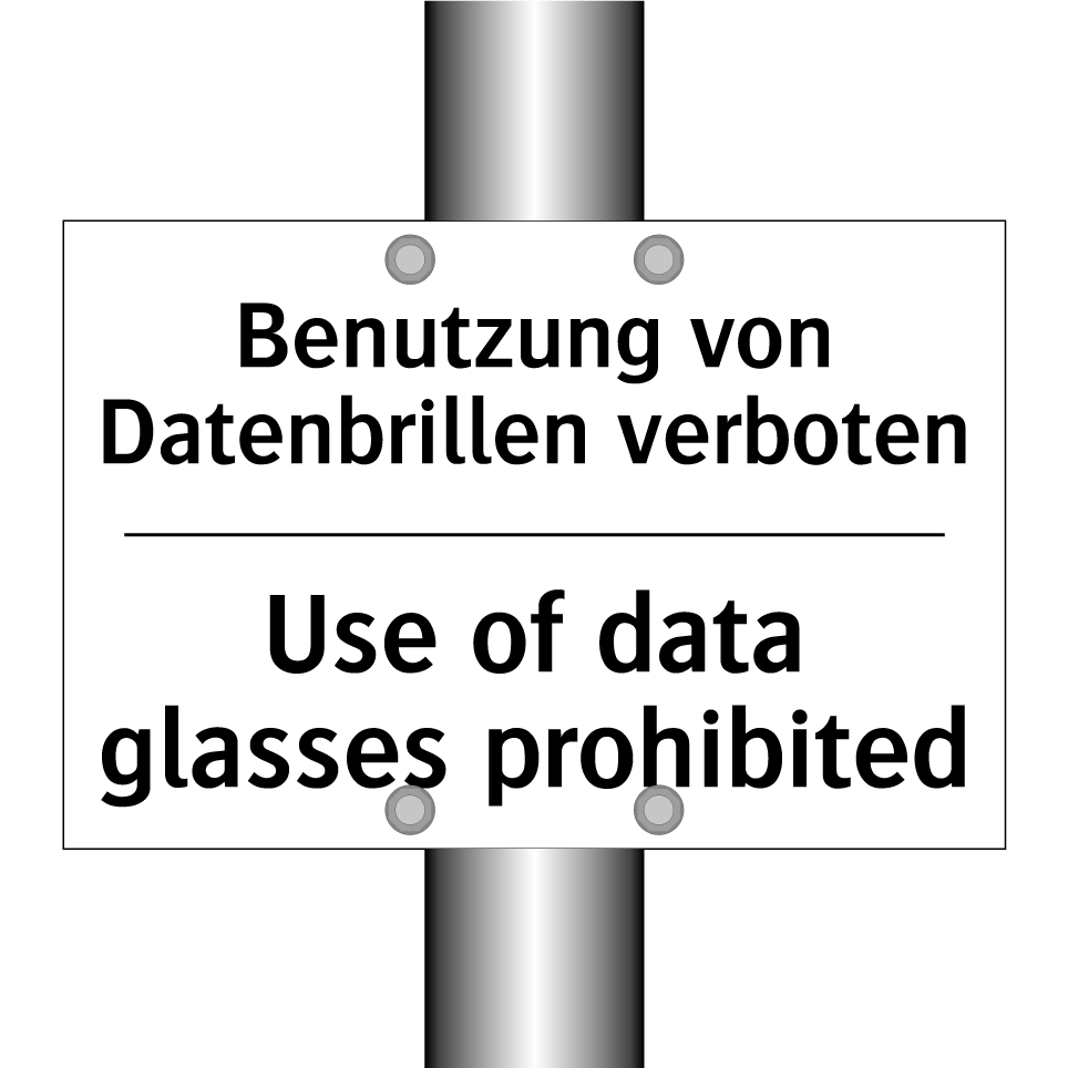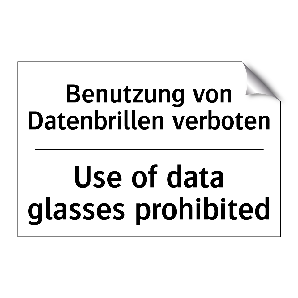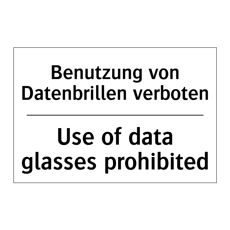 Zweisprachiges Verbotsschild mit deutschem Text Benutzung von Datenbrillen verboten und englischem Text Use of data glasses prohibited