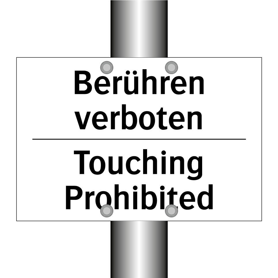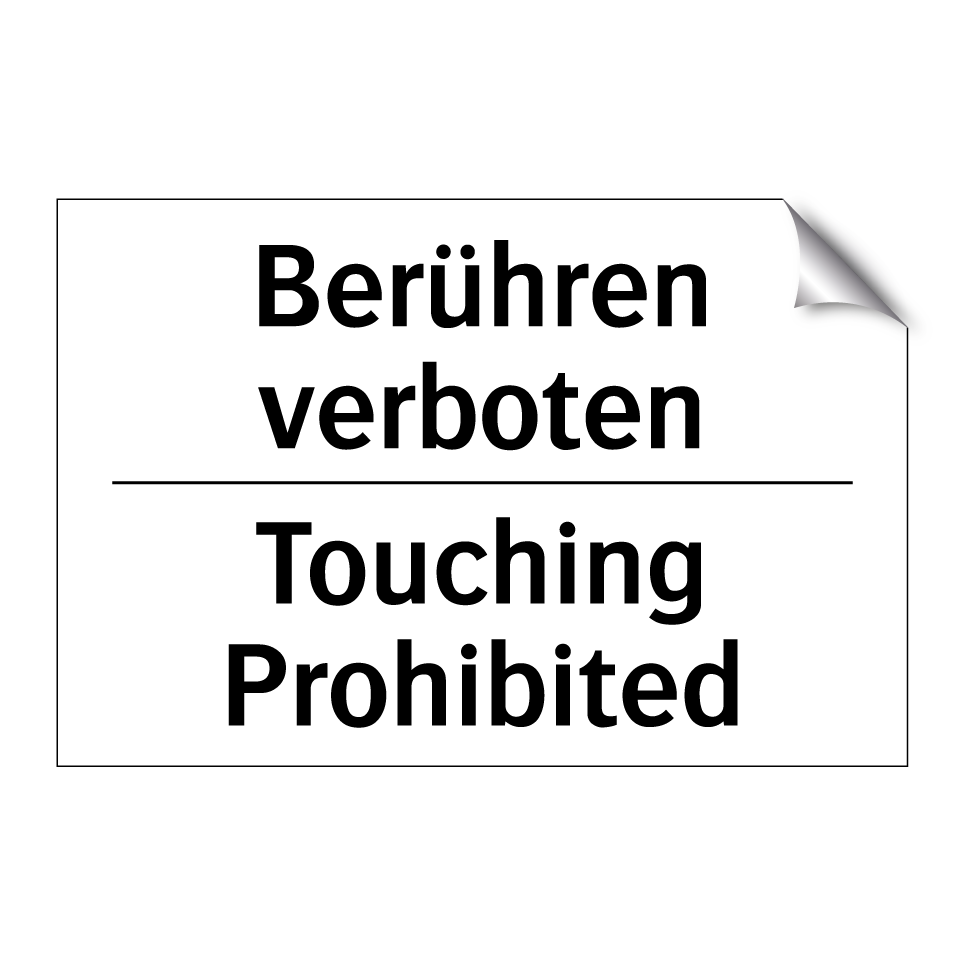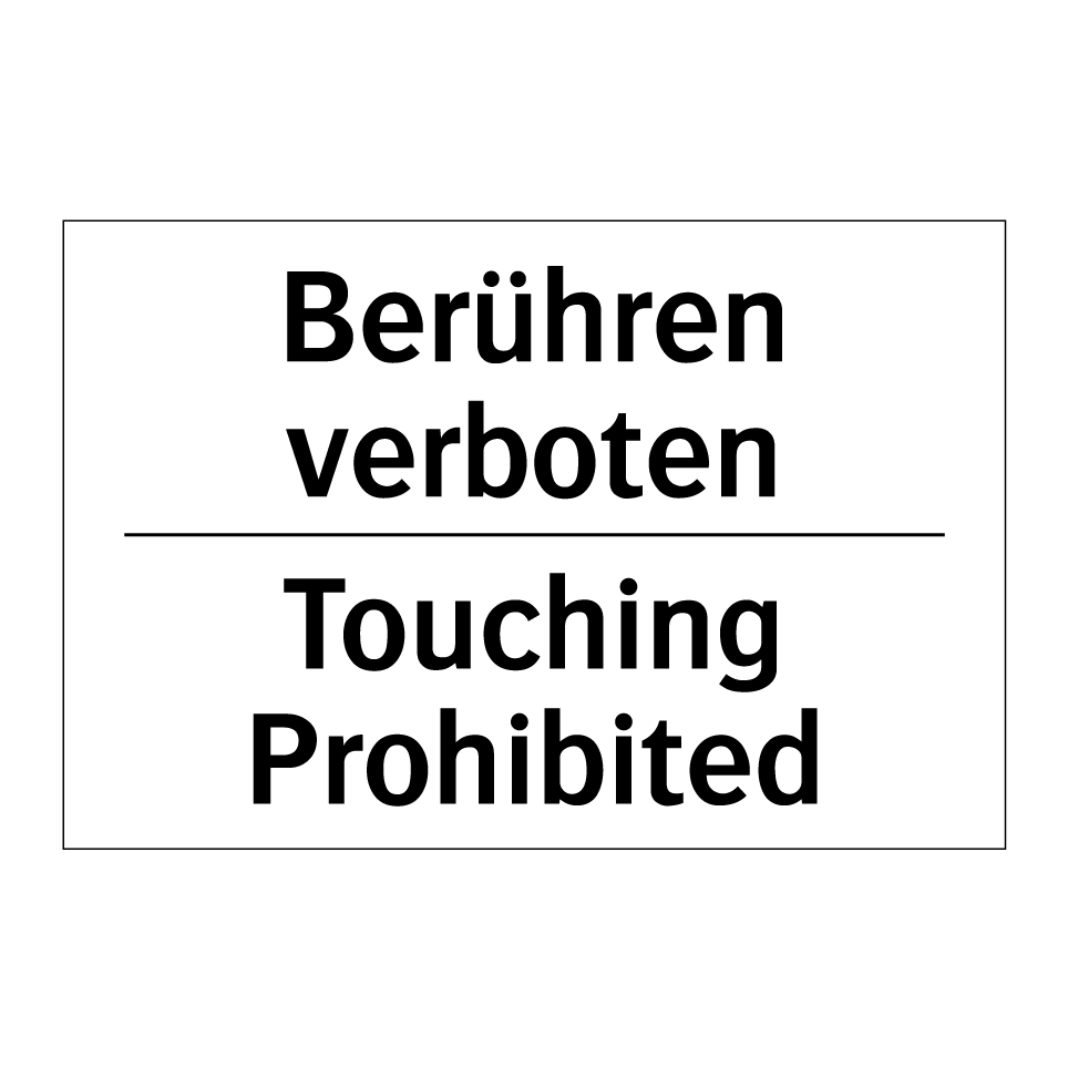 Zweisprachiges Verbotsschild mit deutschem Text Berühren verboten und englischem Text Touching Prohibited