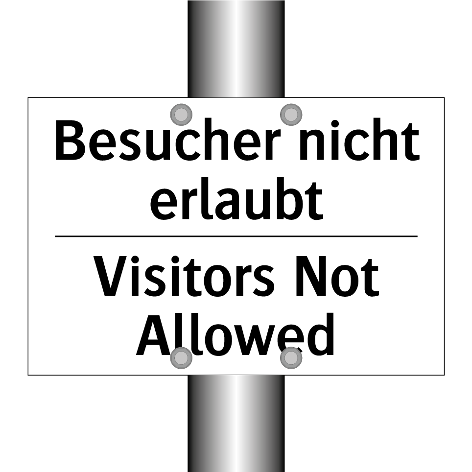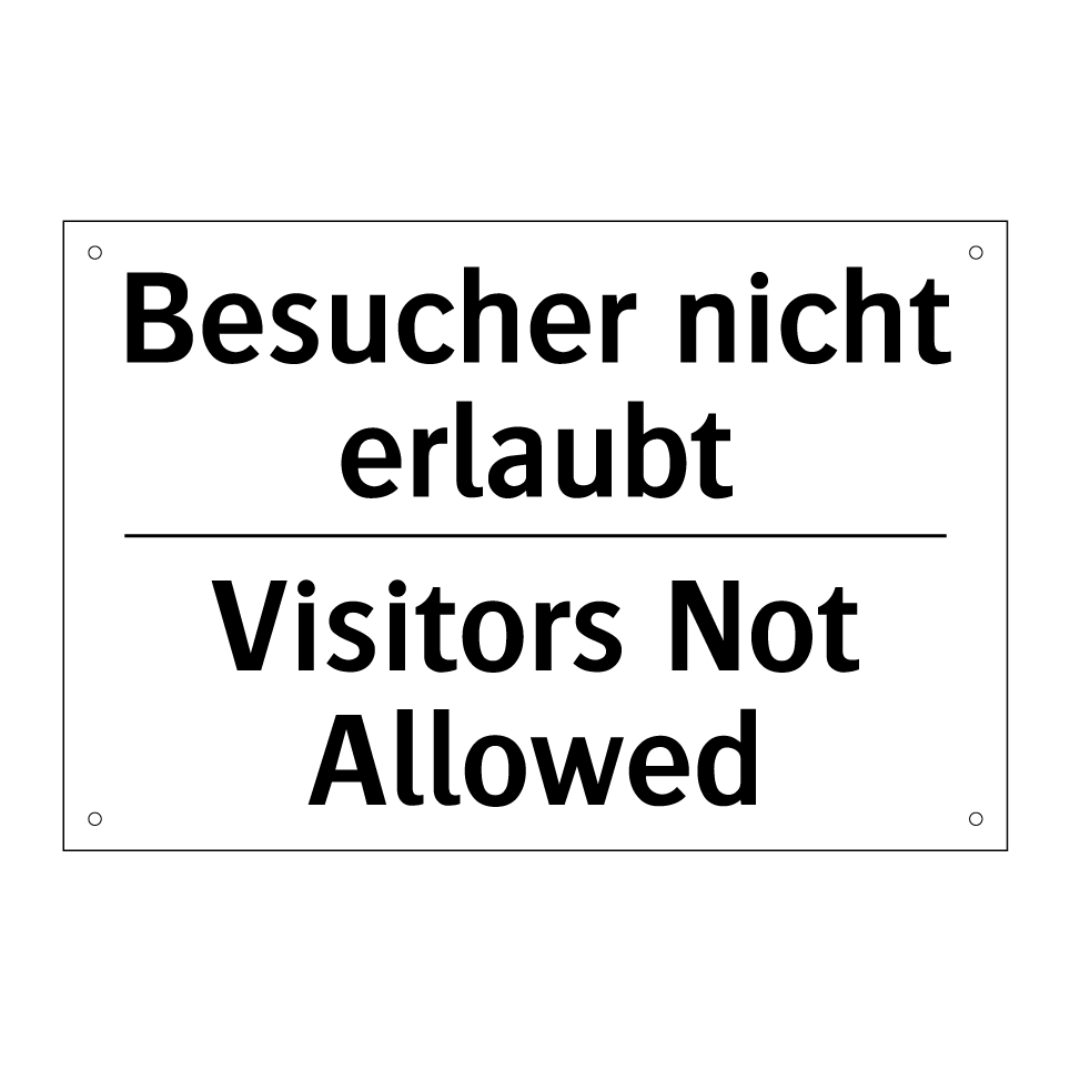 Zweisprachiges Verbotsschild mit deutschem Text Besucher nicht erlaubt und englischem Text Visitors Not Allowed