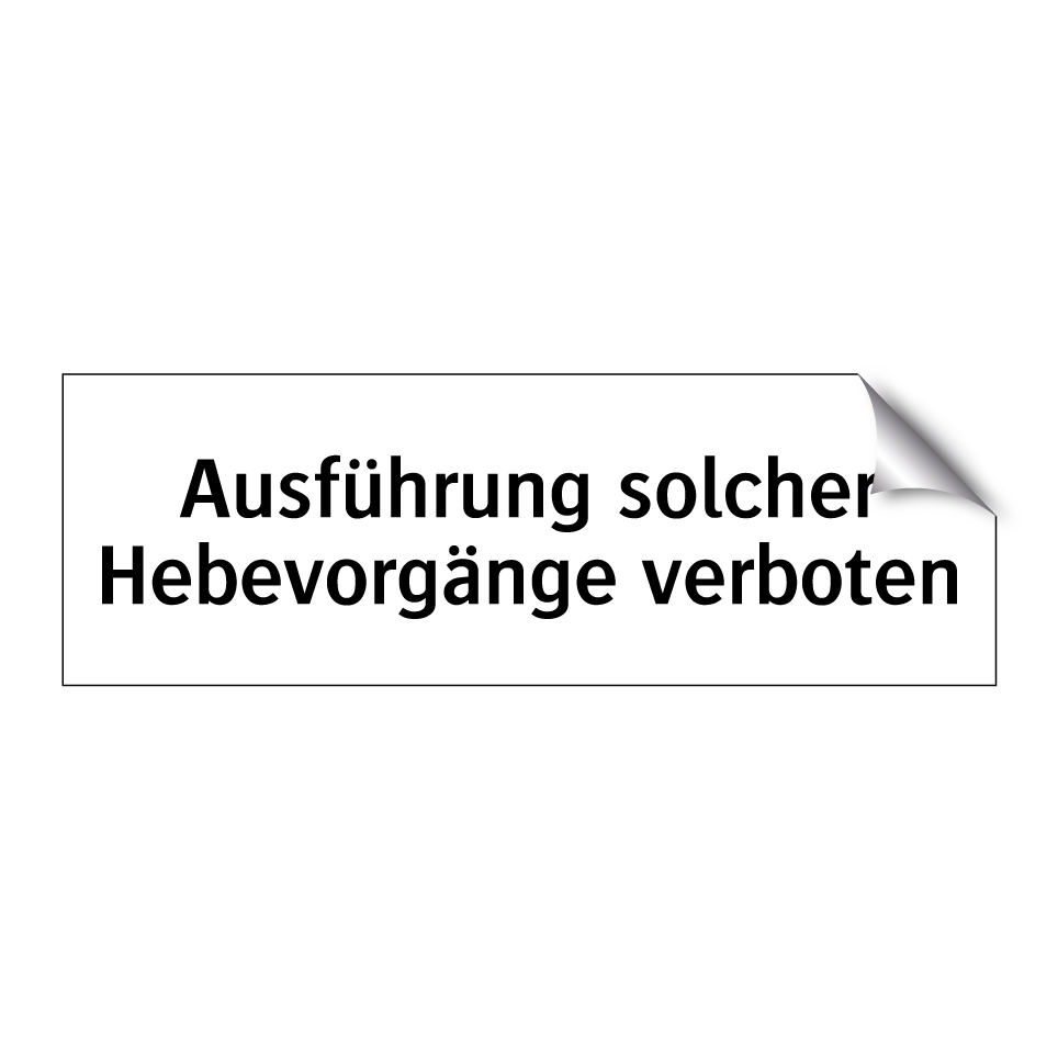 Verbotsschild mit dem Text Ausführung solcher Hebevorgänge verboten