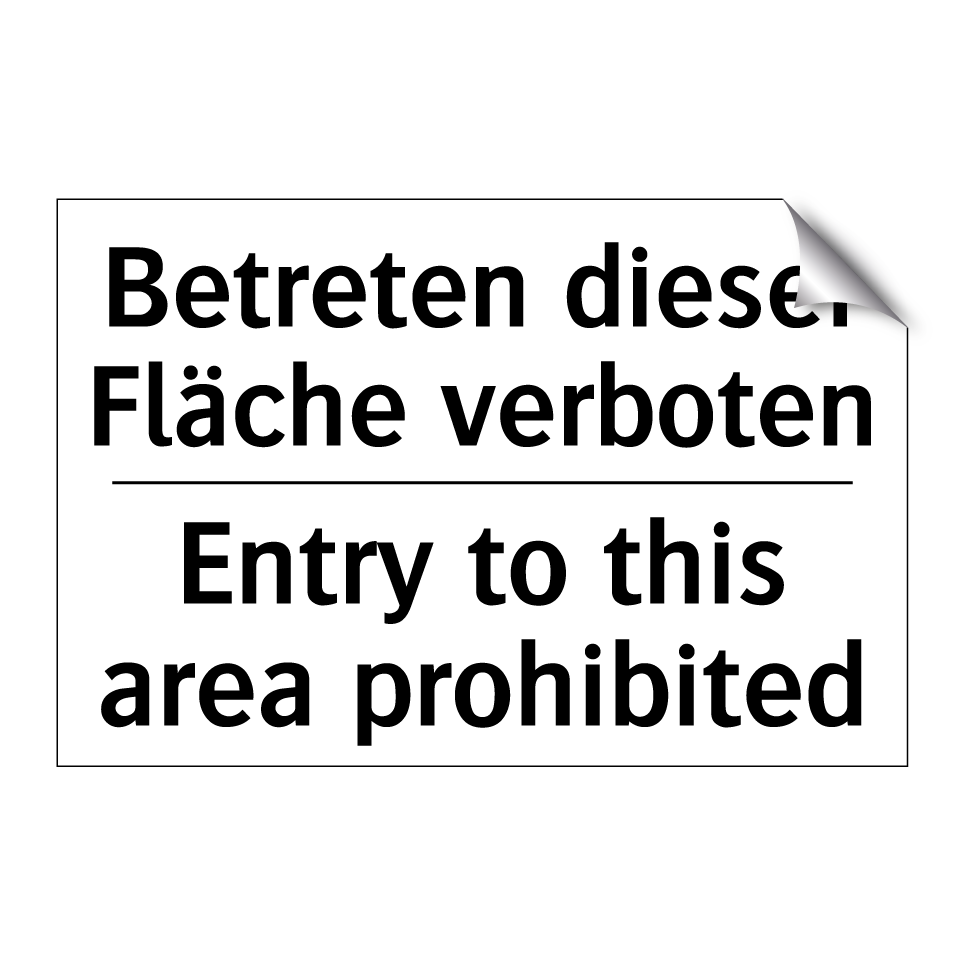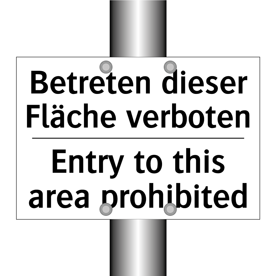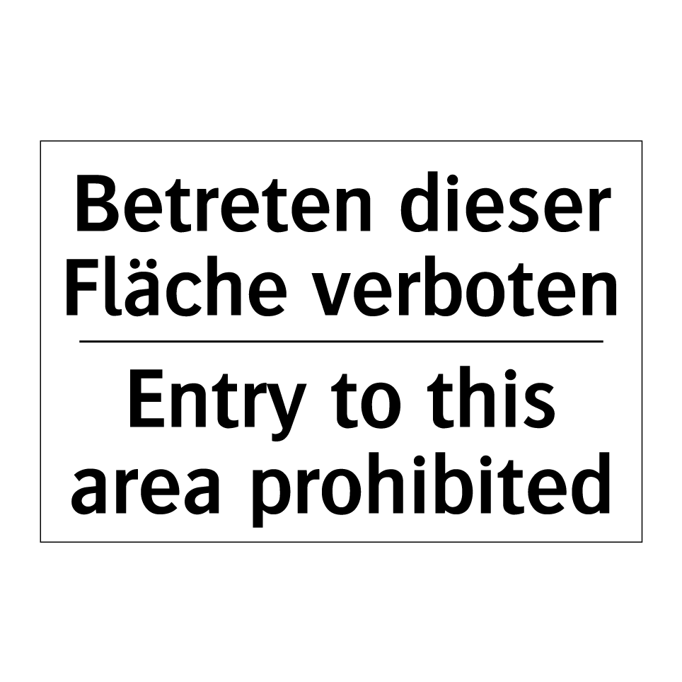 Zweisprachiges Verbotsschild mit deutschem Text Betreten dieser Fläche verboten und englischem Text Entry to this area prohibited