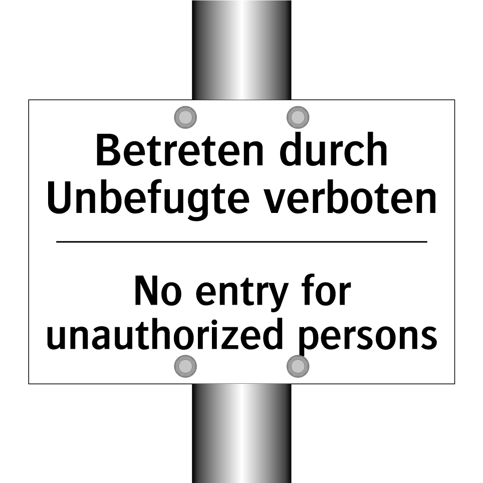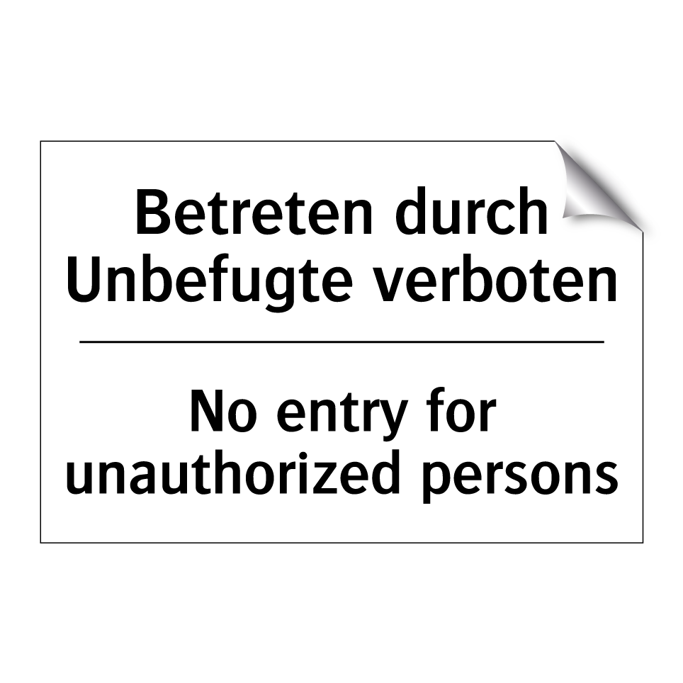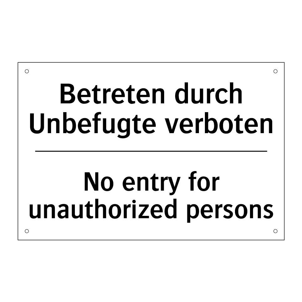 Zweisprachiges Verbotsschild mit deutschem Text Betreten durch Unbefugte verboten und englischem Text No entry for unauthorized persons