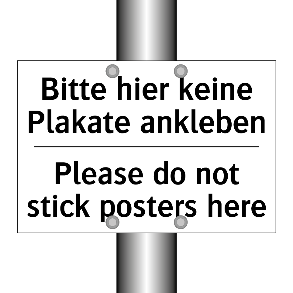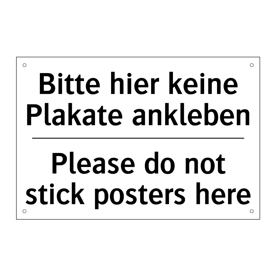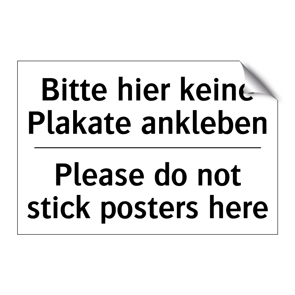 Zweisprachiges Verbotsschild mit deutschem Text Bitte hier keine Plakate ankleben und englischem Text Please do not stick posters here