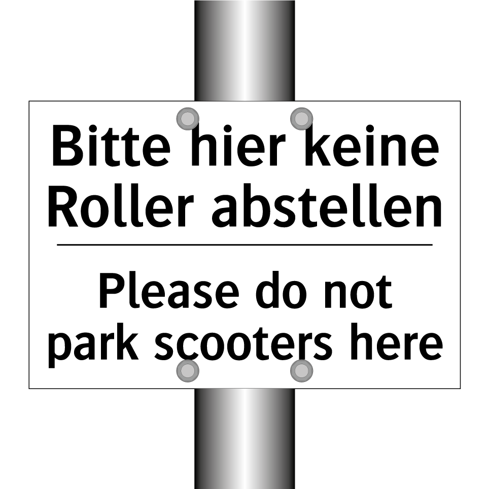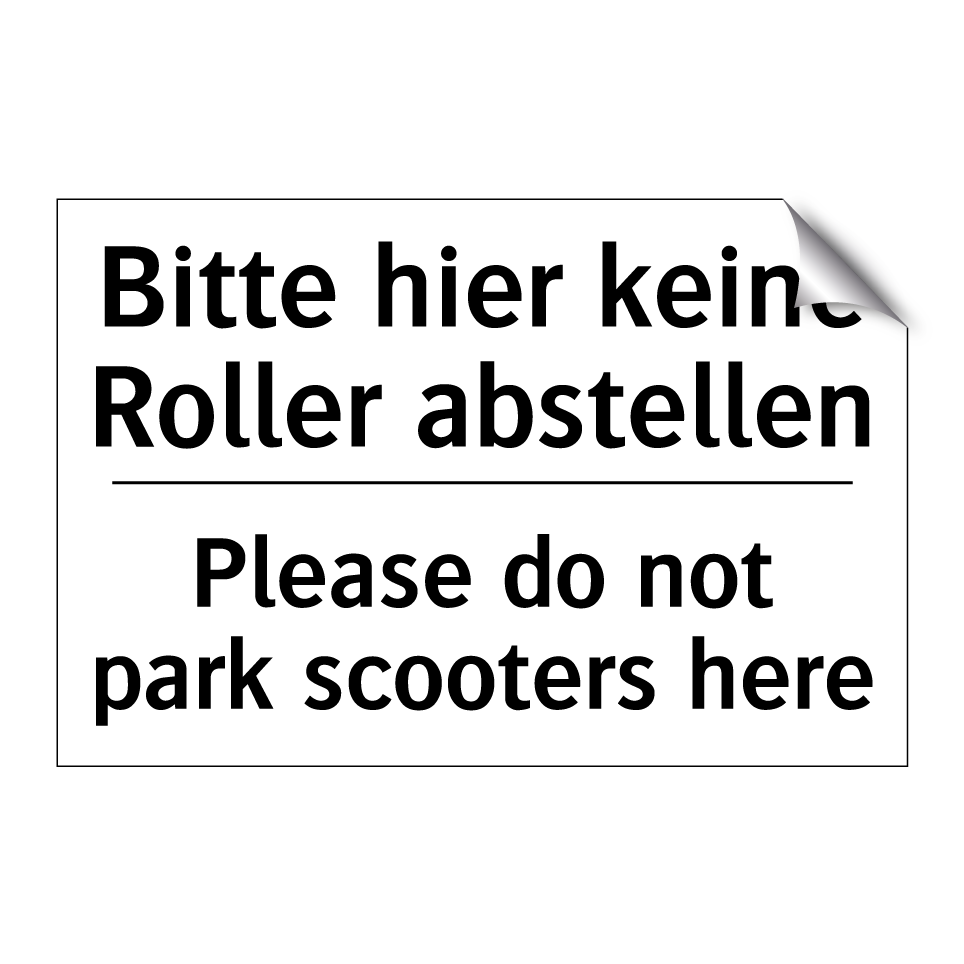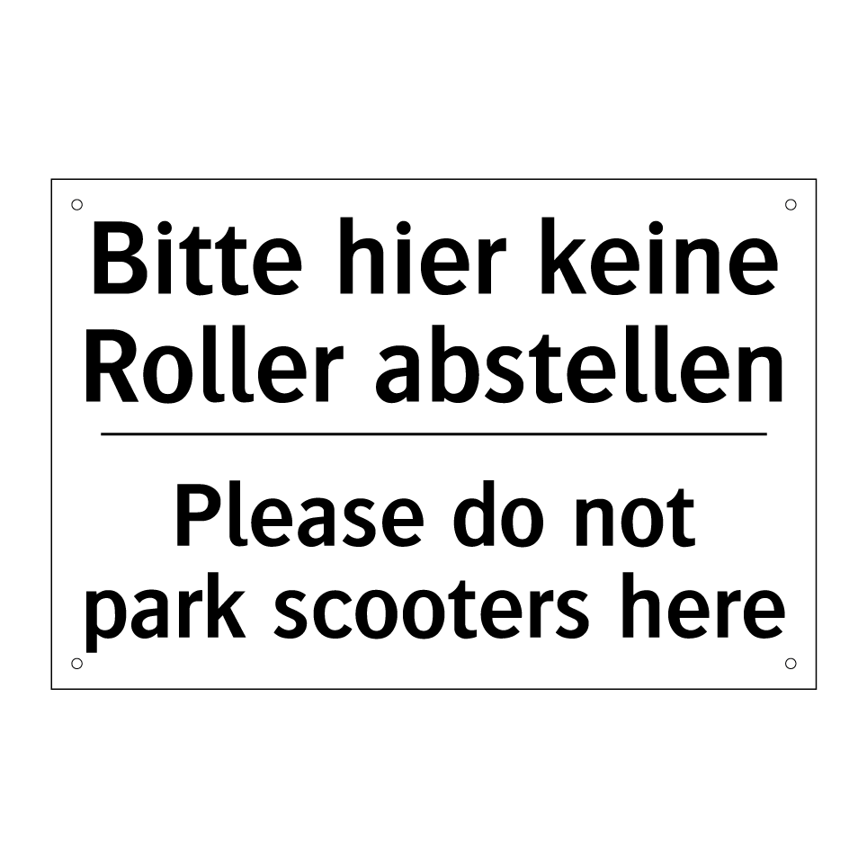 Zweisprachiges Verbotsschild mit deutschem Text Bitte hier keine Roller abstellen und englischem Text Please do not park scooters here
