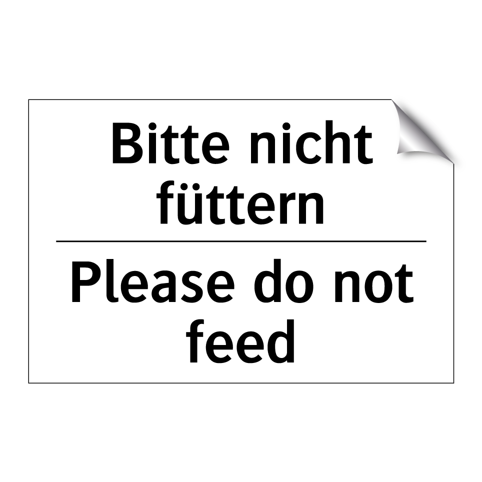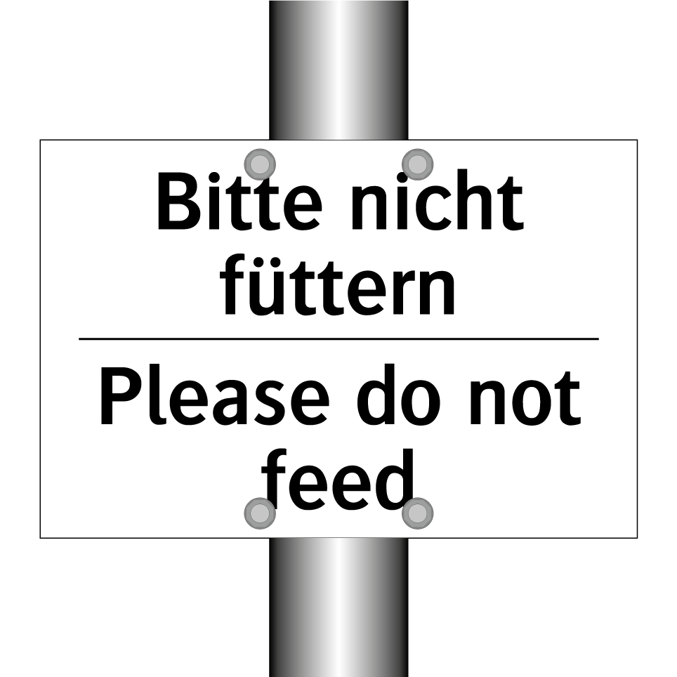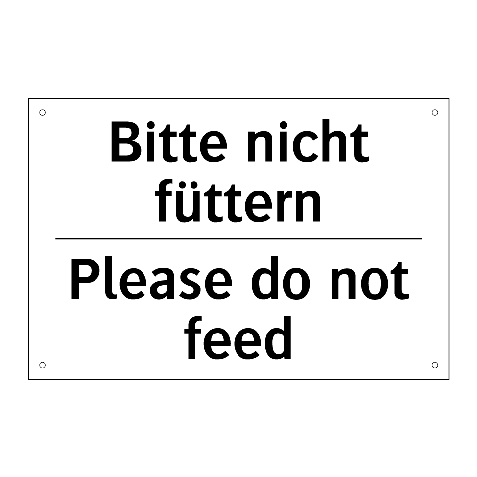 Zweisprachiges Verbotsschild mit deutschem Text Bitte nicht füttern und englischem Text Please do not feed