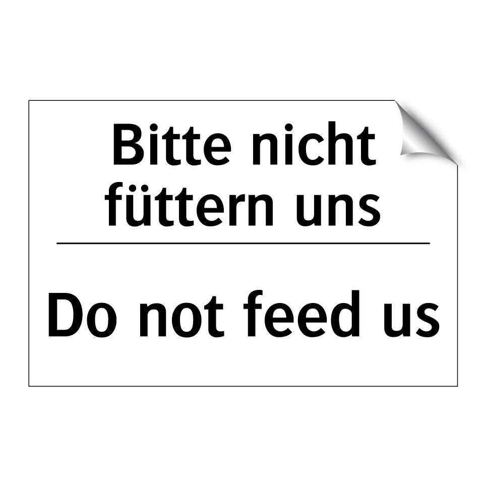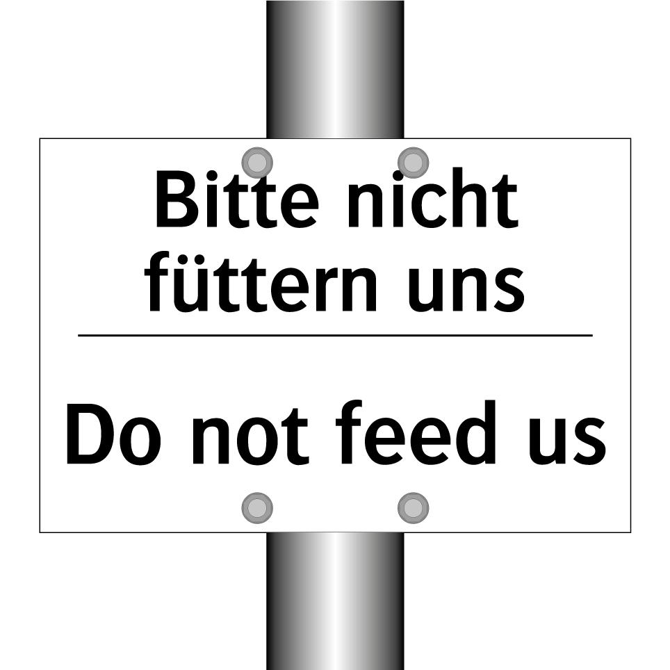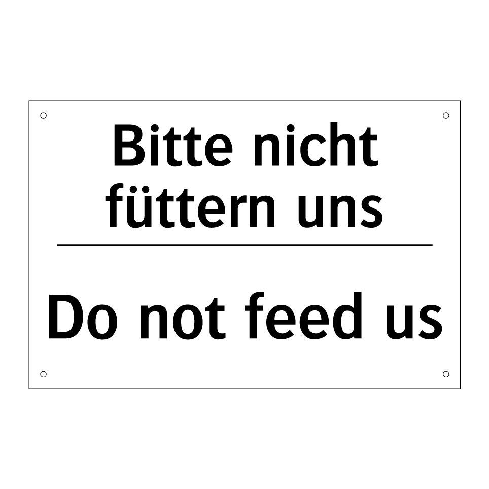 Zweisprachiges Verbotsschild mit deutschem Text Bitte nicht füttern uns und englischem Text Do not feed us