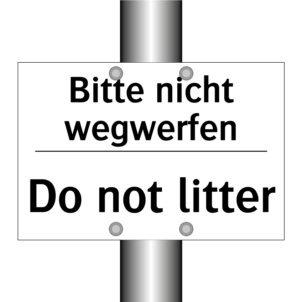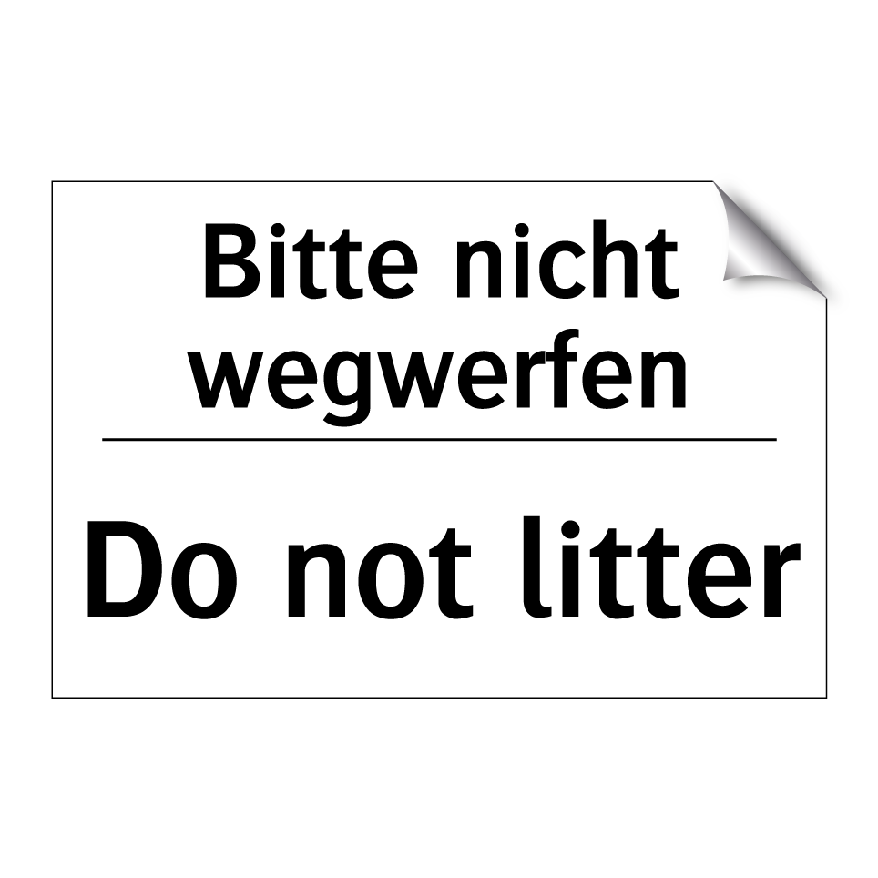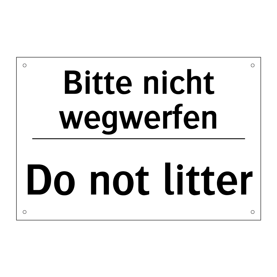 Zweisprachiges Verbotsschild mit deutschem Text Bitte nicht wegwerfen und englischem Text Do not litter