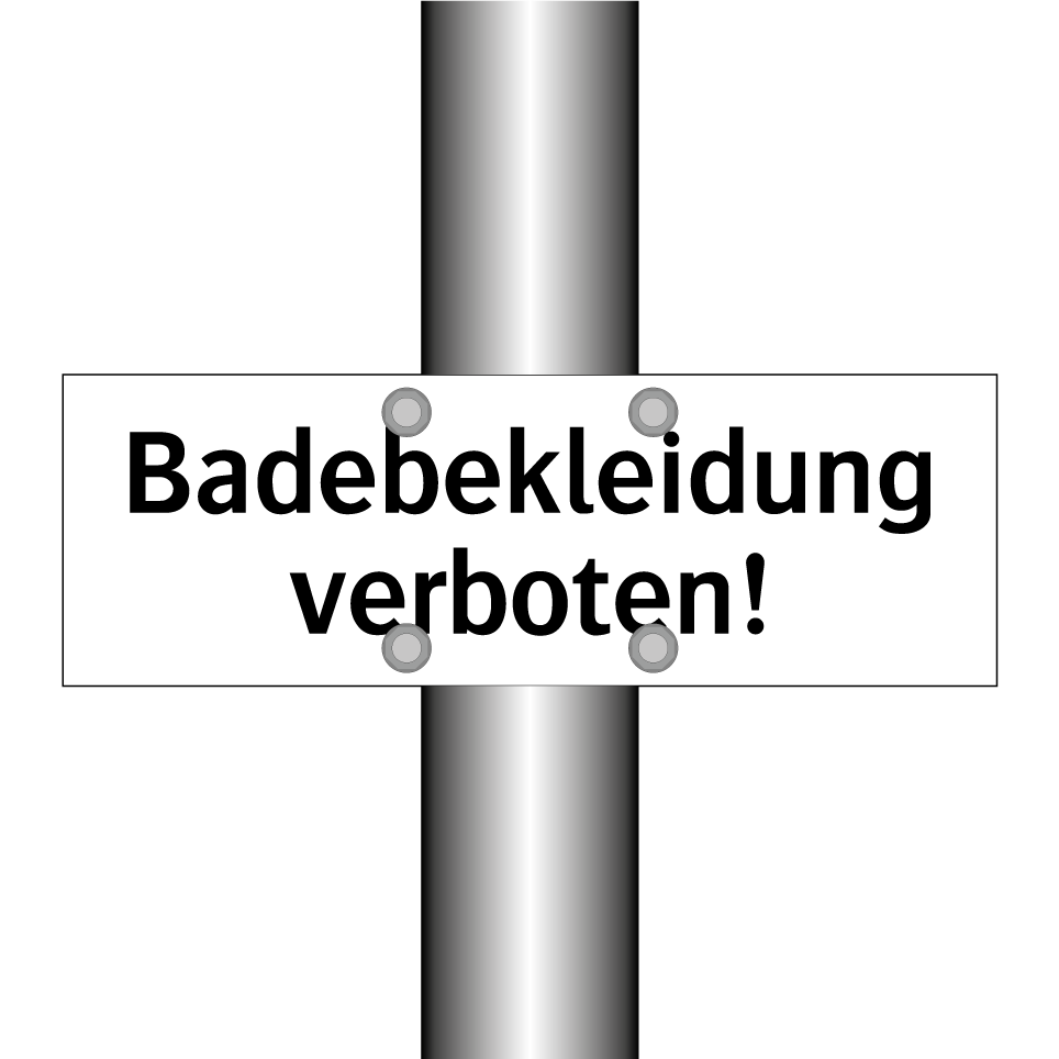 Verbotsschild mit dem Text Badebekleidung verboten!