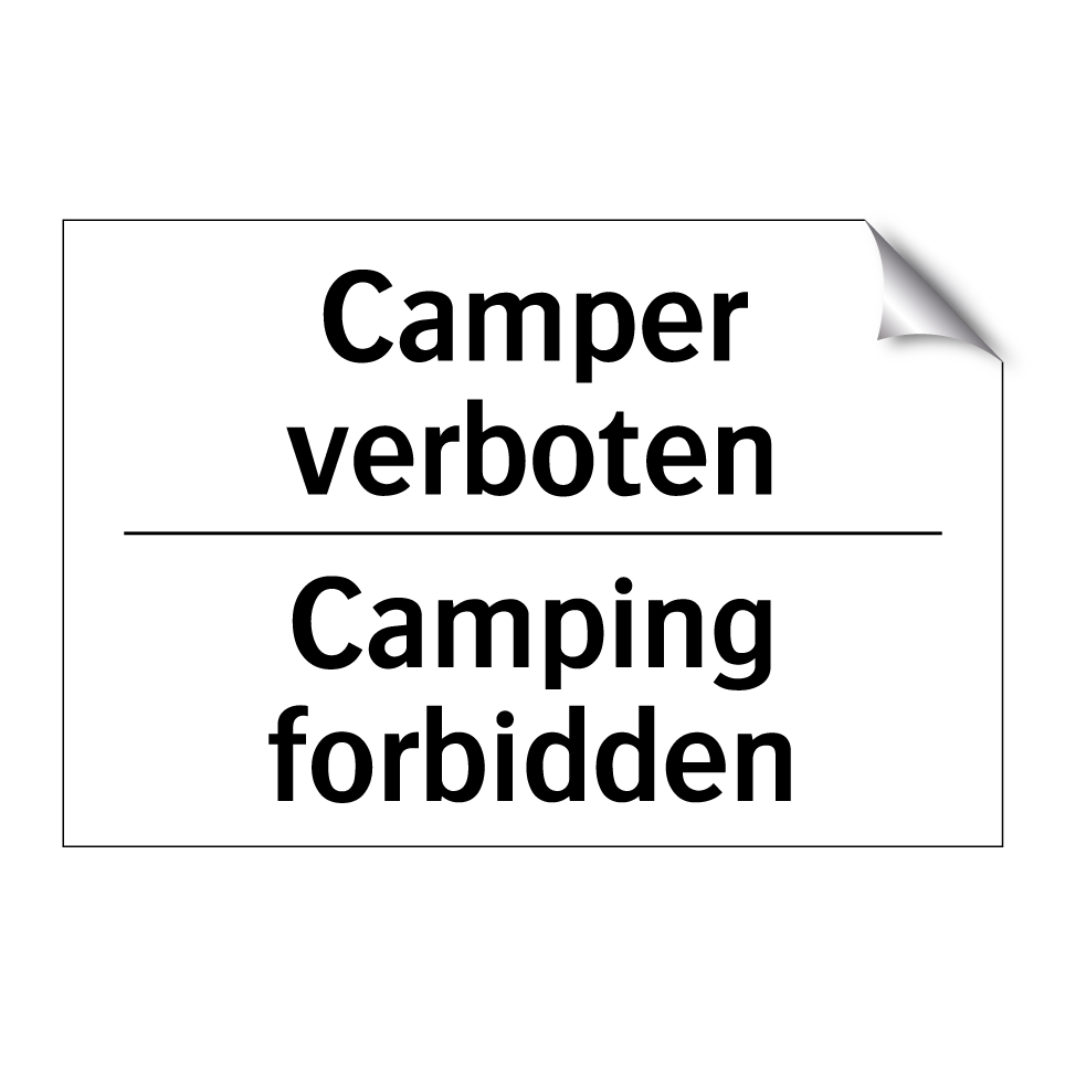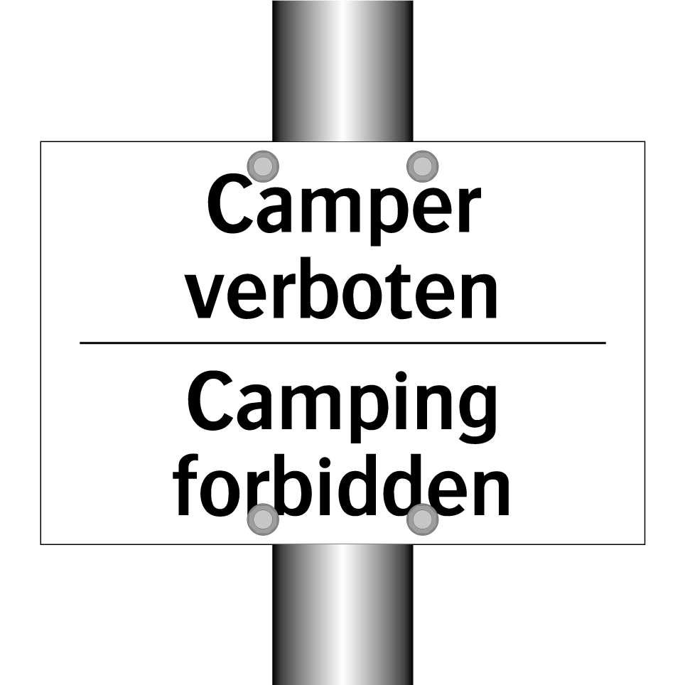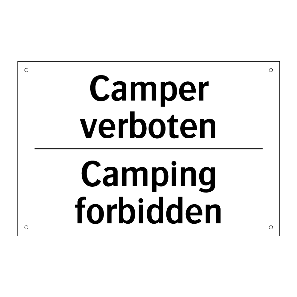 Zweisprachiges Verbotsschild mit deutschem Text Camper verboten und englischem Text Camping forbidden