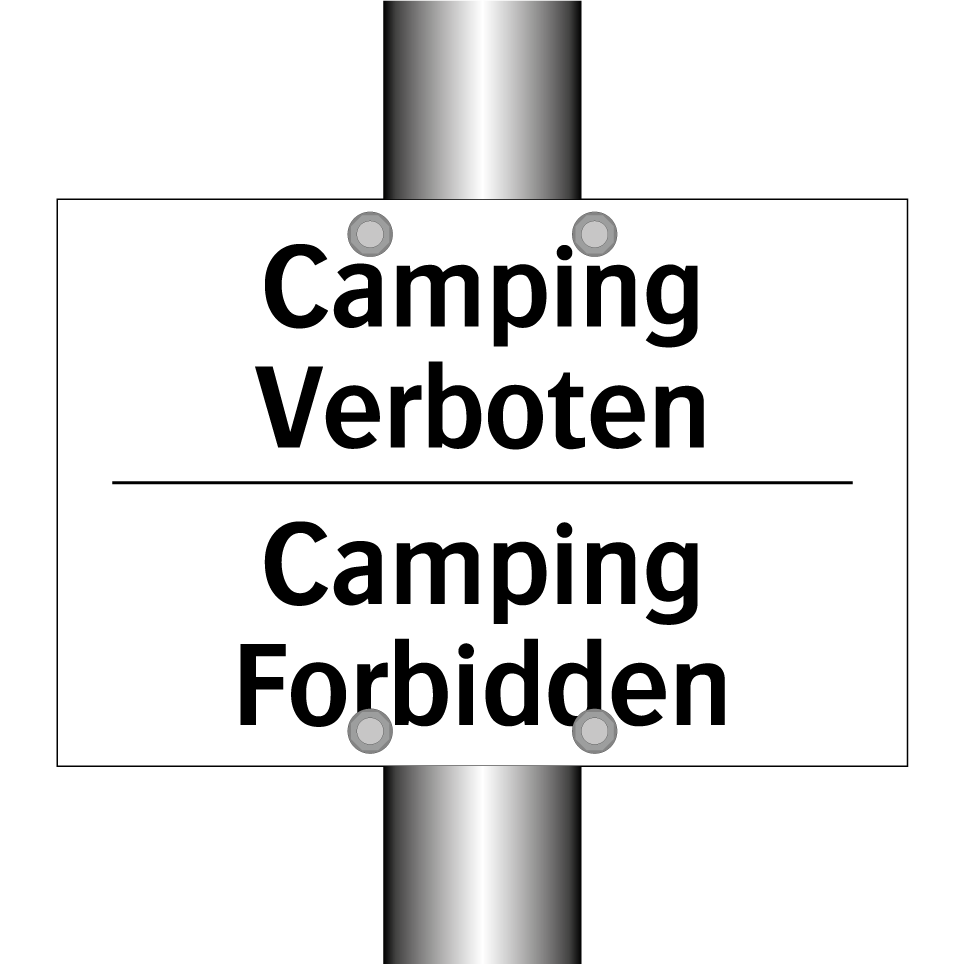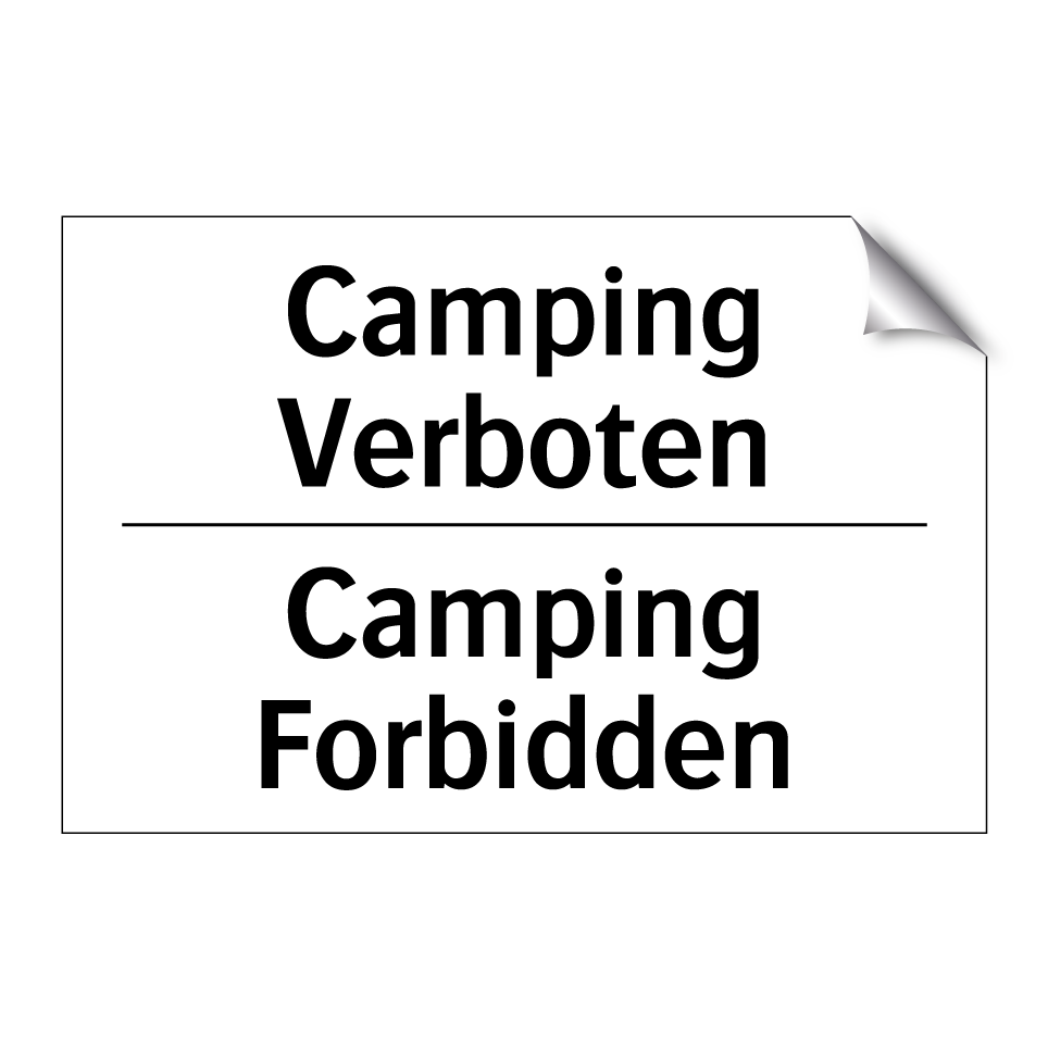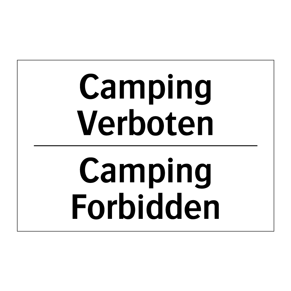 Zweisprachiges Verbotsschild mit deutschem Text Camping Verboten und englischem Text Camping Forbidden