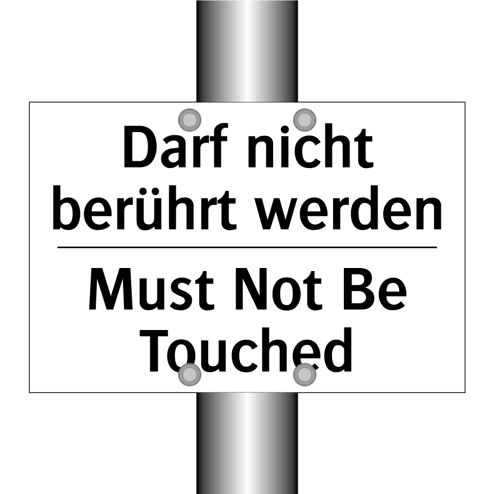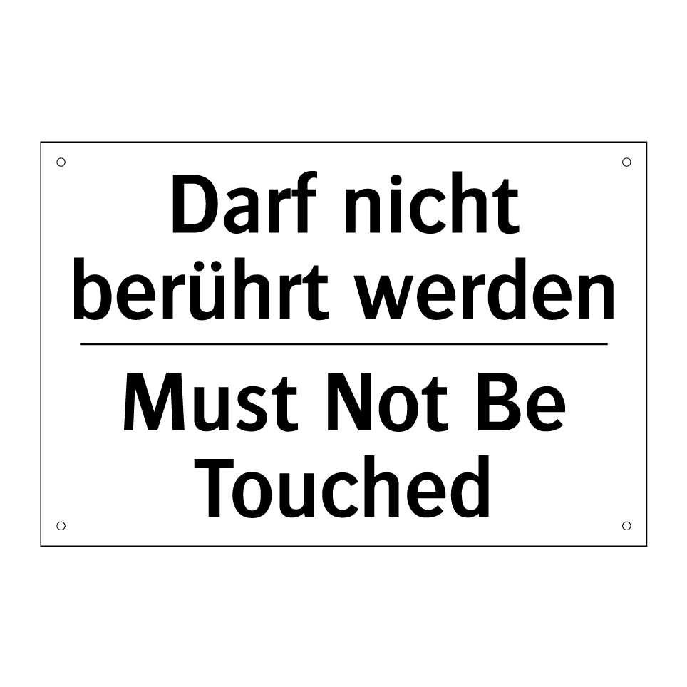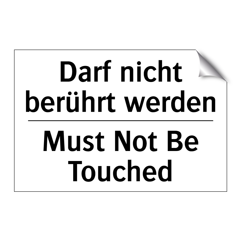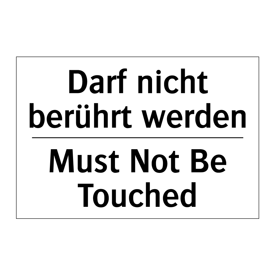 Zweisprachiges Verbotsschild mit deutschem Text Darf nicht berührt werden und englischem Text Must Not Be Touched