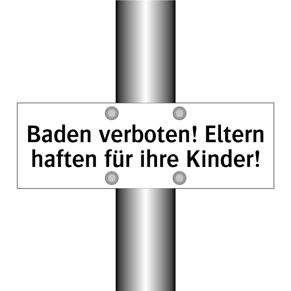 Verbotsschild mit dem Text Baden verboten! Eltern haften für ihre Kinder!