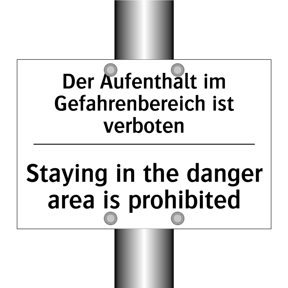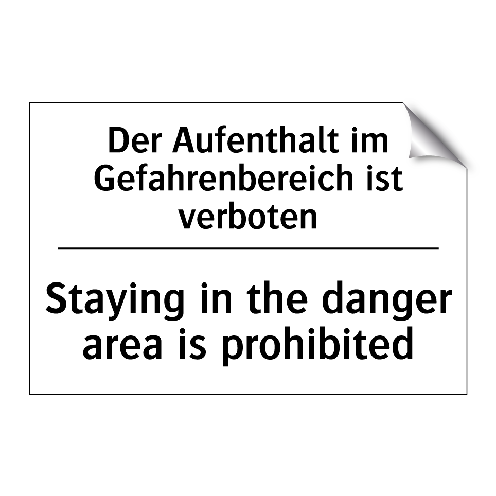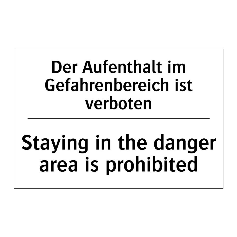 Zweisprachiges Verbotsschild mit deutschem Text Der Aufenthalt im Gefahrenbereich ist verboten und englischem Text Staying in the danger area is prohibited