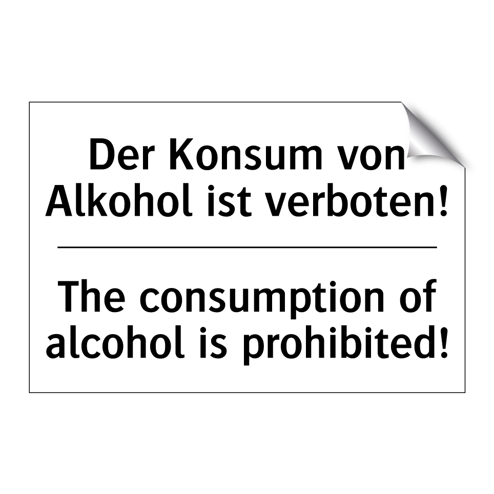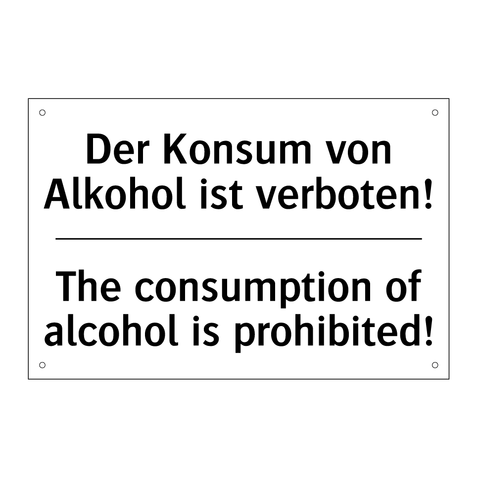 Zweisprachiges Verbotsschild mit deutschem Text Der Konsum von Alkohol ist verboten! und englischem Text The consumption of alcohol is prohibited!