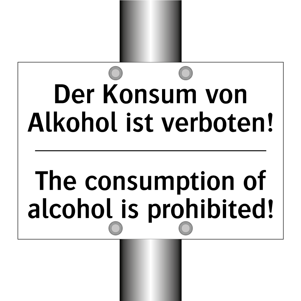 Diese zweisprachige Verbotsschild ist ideal, um klare Botschaften in verschiedenen Umgebungen zu vermitteln. Mit einer deutlichen Anweisung auf Deutsch und Englisch, informiert sie effektiv über das Alkoholverbot. Diese Schilder sind besonders nützlich in Bereichen wie öffentlichen Parks, Firmengeländen, Schulen und Veranstaltungsorten, wo der Konsum von Alkohol unerwünscht ist. Die zweisprachige Gestaltung sorgt dafür, dass sowohl deutsch- als auch englischsprachige Personen die Regelung sofort verstehen. Durch die klare und prägnante Darstellung wird sichergestellt, dass die Botschaft nicht übersehen wird, was zur Einhaltung der Vorschriften beiträgt.