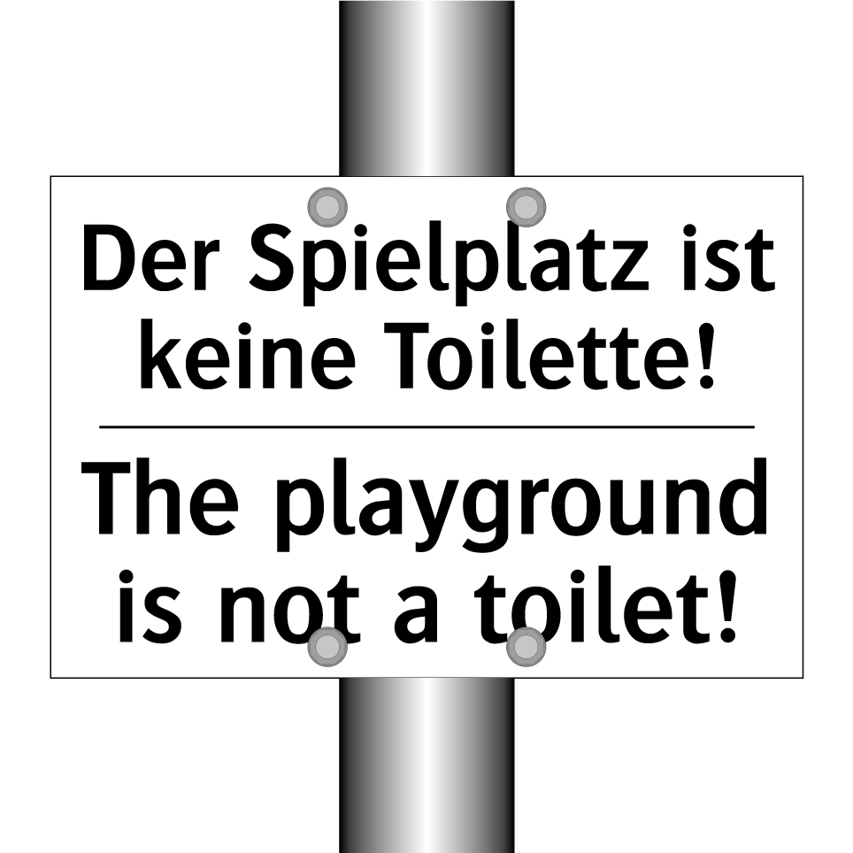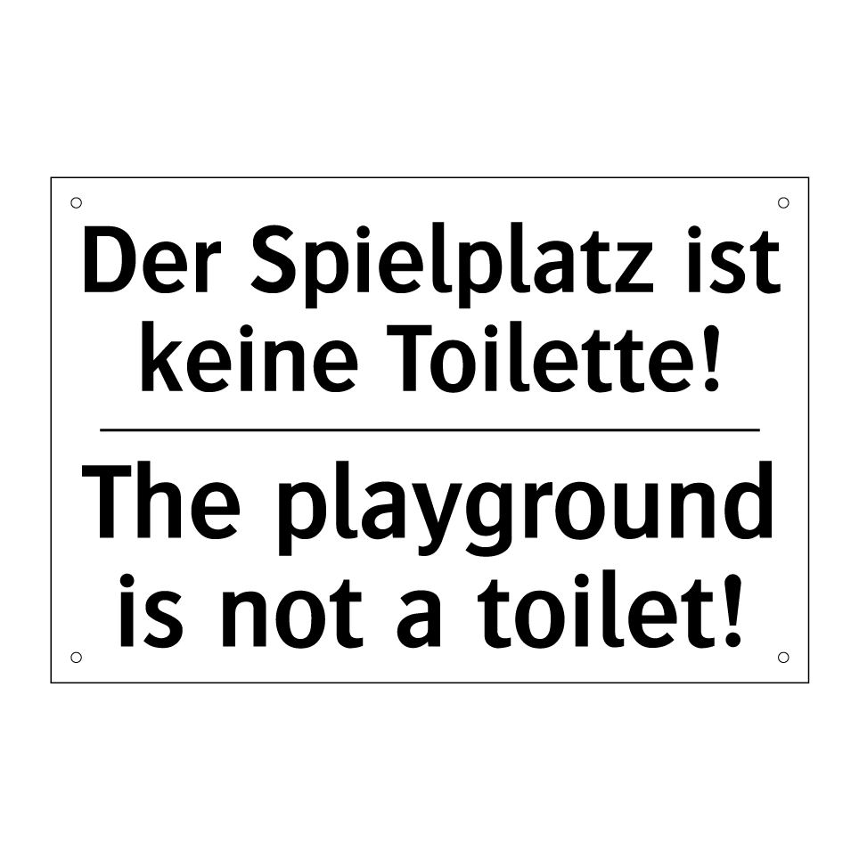 Zweisprachiges Verbotsschild mit deutschem Text Der Spielplatz ist keine Toilette! und englischem Text The playground is not a toilet!