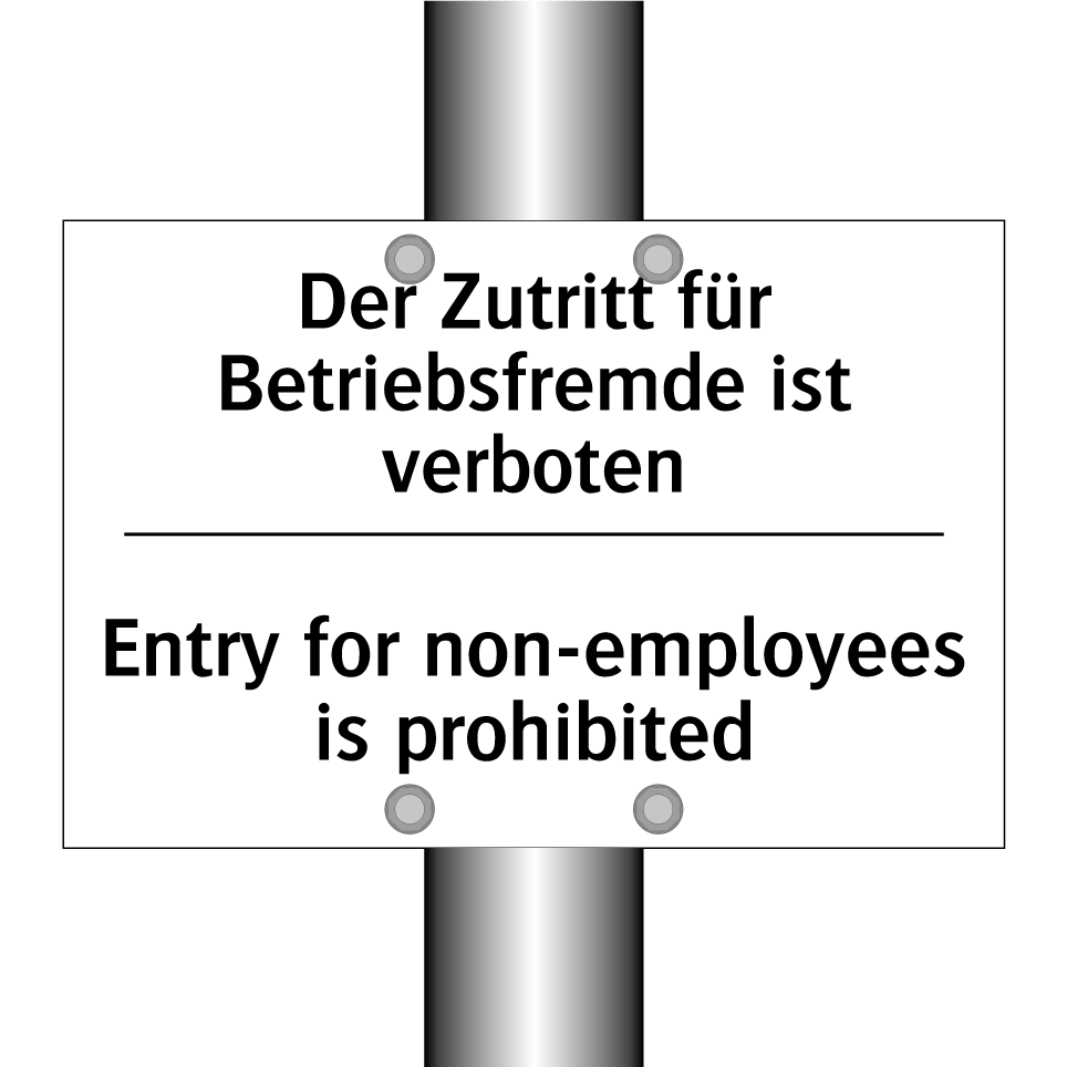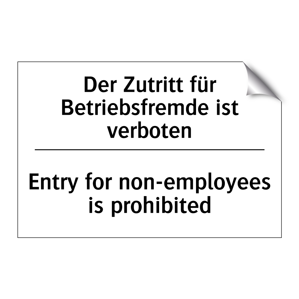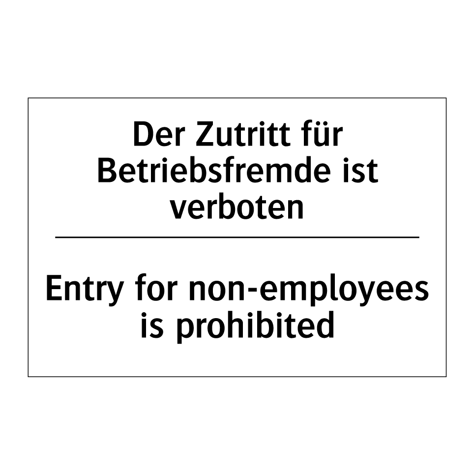 Zweisprachiges Verbotsschild mit deutschem Text Der Zutritt für Betriebsfremde ist verboten und englischem Text Entry for non-employees is prohibited