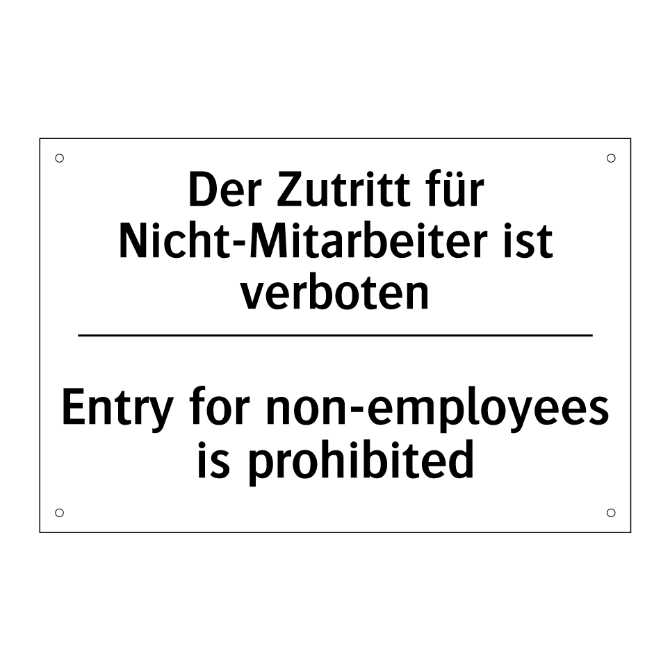 Zweisprachiges Verbotsschild mit deutschem Text Der Zutritt für Nicht-Mitarbeiter ist verboten und englischem Text Entry for non-employees is prohibited