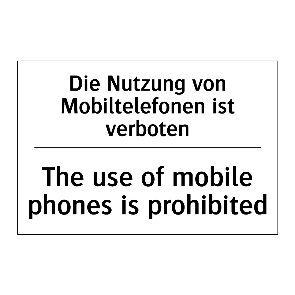 Diese Verbotsschild ist ideal für Bereiche, in denen die Nutzung von Mobiltelefonen eingeschränkt werden muss. Mit ihrer klaren Botschaft in sowohl deutscher als auch englischer Sprache eignet sie sich hervorragend für internationale Umgebungen wie Flughäfen, Büros, Schulen und Krankenhäuser. Die zweisprachige Beschriftung stellt sicher, dass die Anweisung von einem breiten Publikum verstanden wird, was die Effektivität der Kommunikation erhöht. Platzieren Sie diese Verbotsschilder an Eingängen, in Wartebereichen oder in Konferenzräumen, um sicherzustellen, dass die Regeln klar und deutlich kommuniziert werden. Diese Schilder tragen dazu bei, eine störungsfreie und konzentrierte Umgebung zu schaffen.