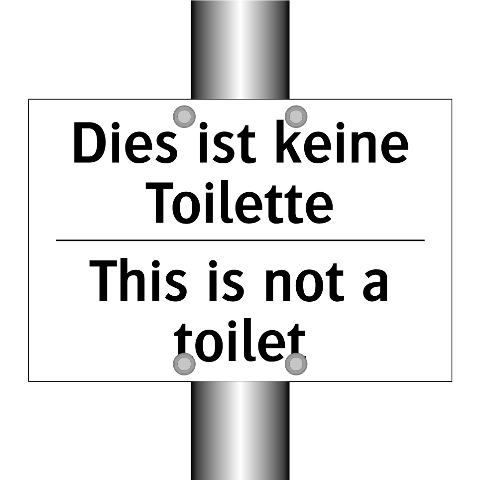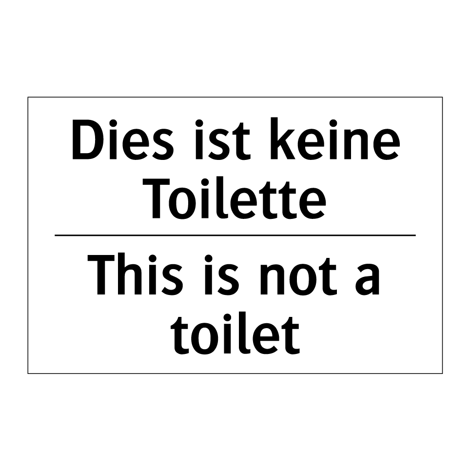 Zweisprachiges Verbotsschild mit deutschem Text Dies ist keine Toilette und englischem Text This is not a toilet