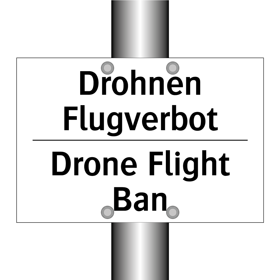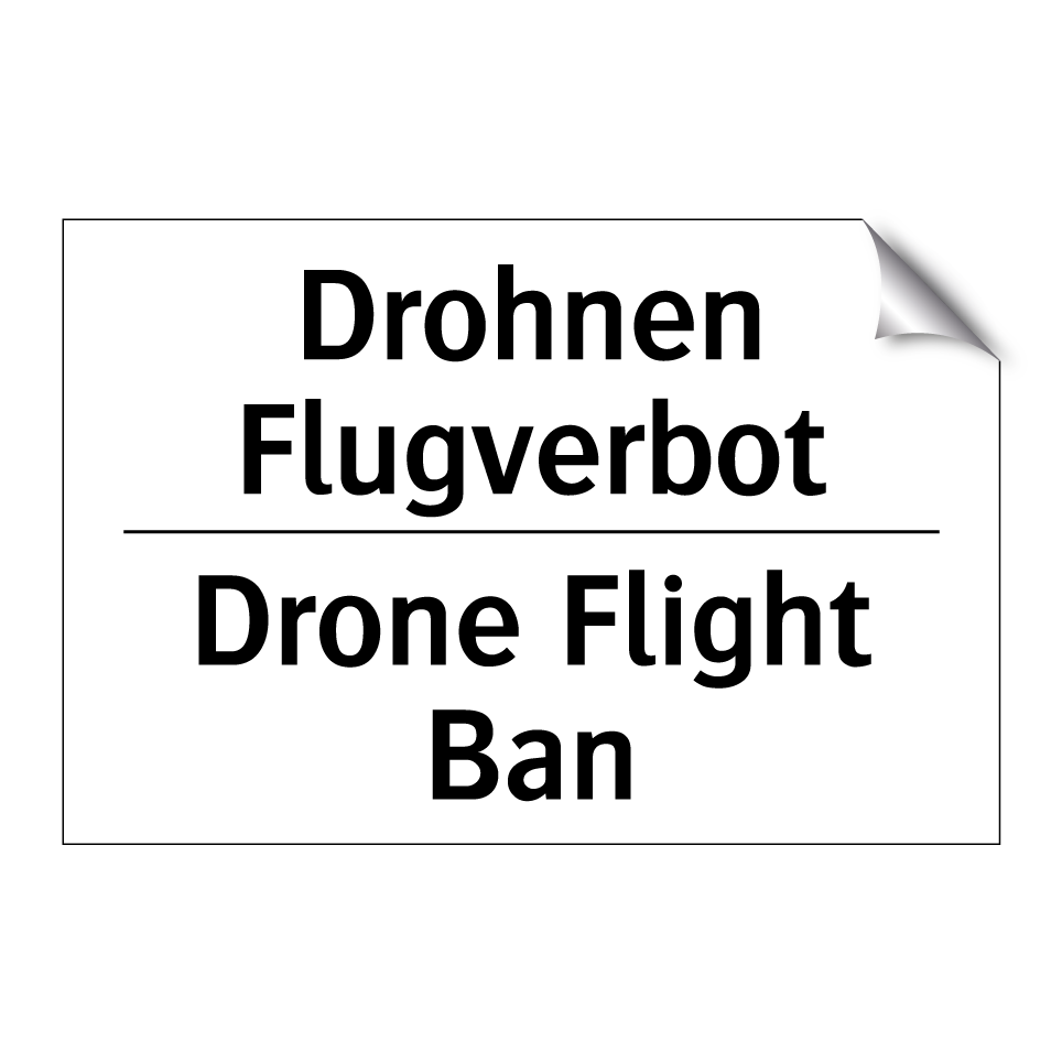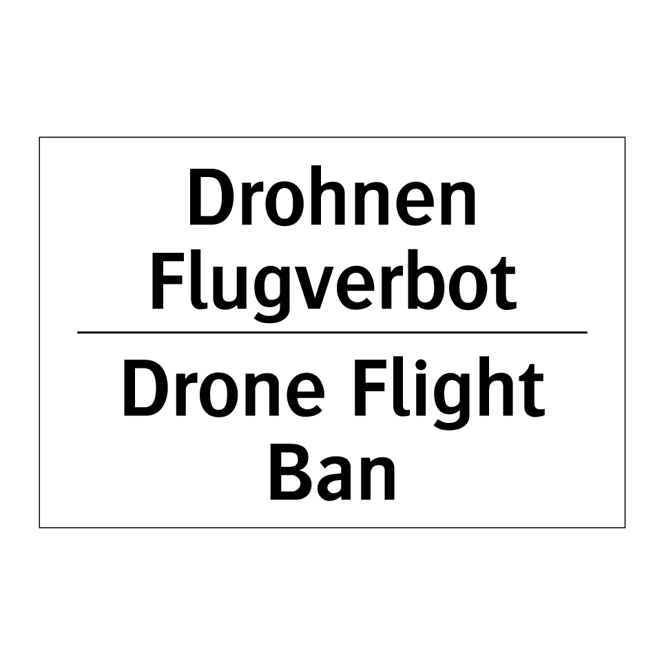 Zweisprachiges Verbotsschild mit deutschem Text Drohnen Flugverbot und englischem Text Drone Flight Ban