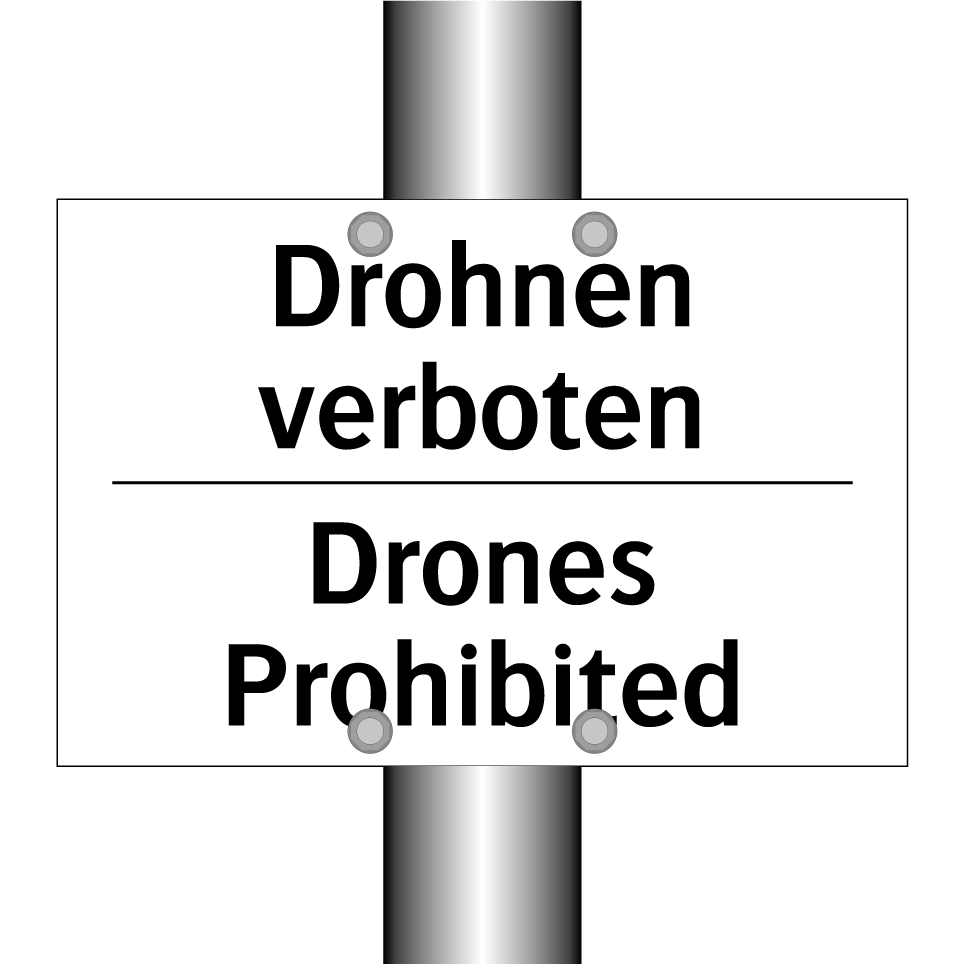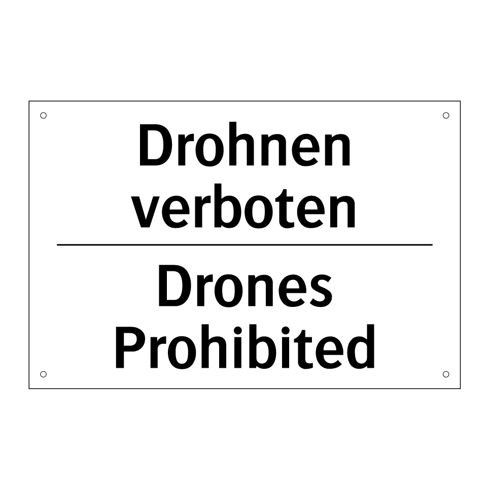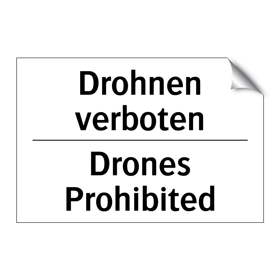 Zweisprachiges Verbotsschild mit deutschem Text Drohnen verboten und englischem Text Drones Prohibited