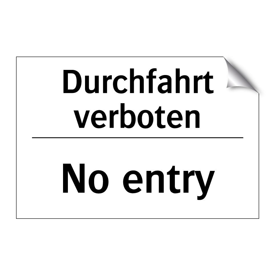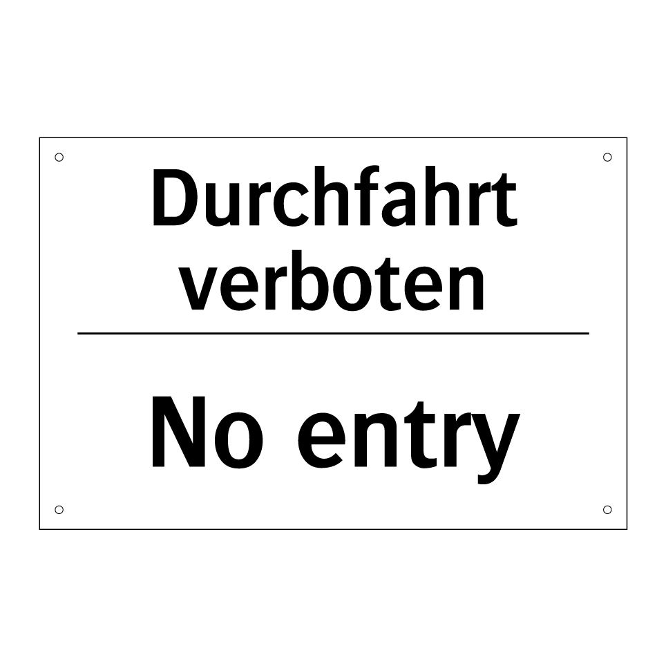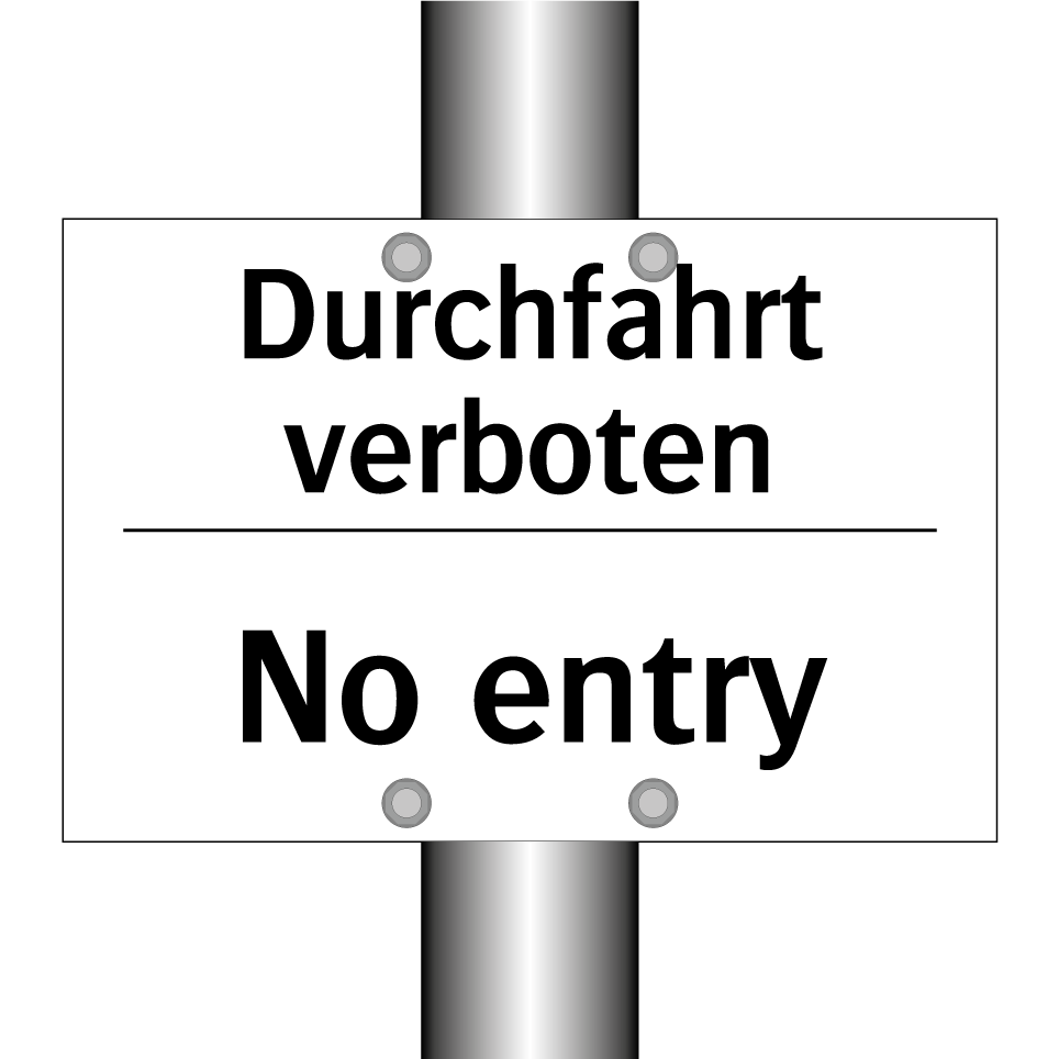 Zweisprachiges Verbotsschild mit deutschem Text Durchfahrt verboten und englischem Text No entry