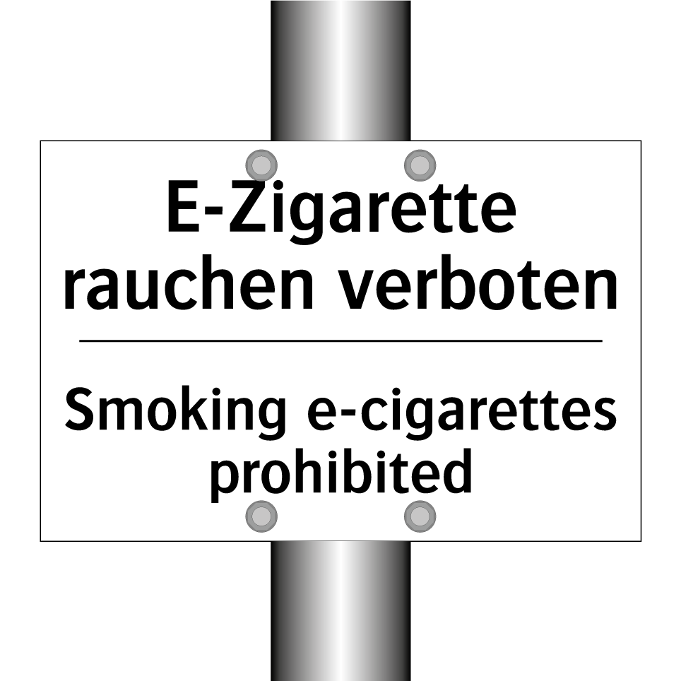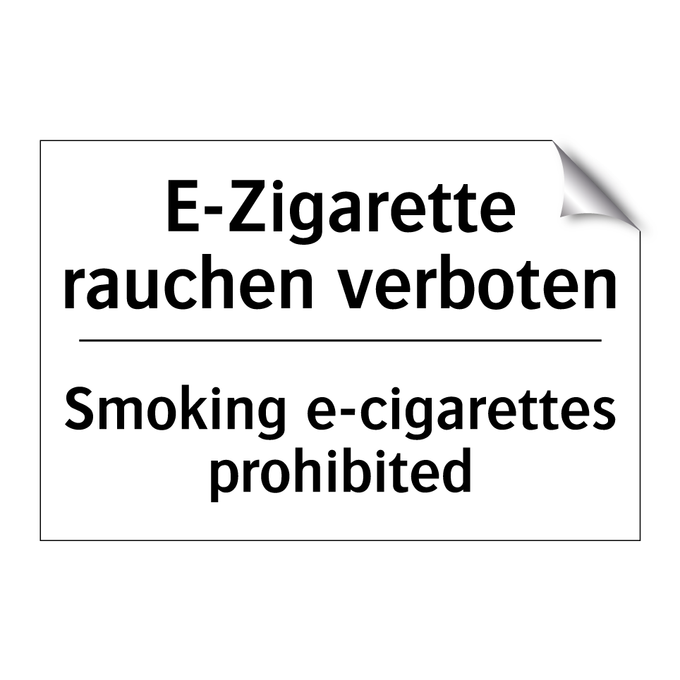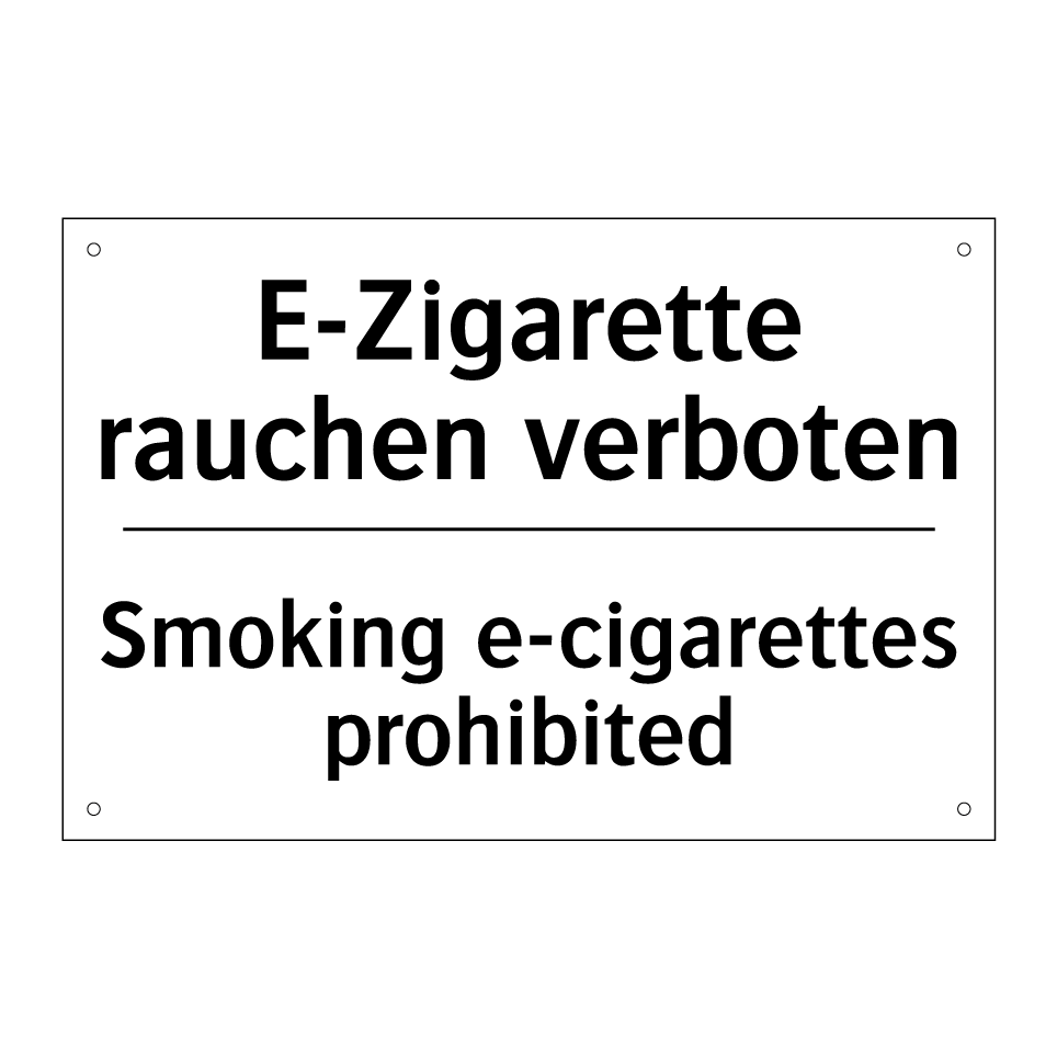 Zweisprachiges Verbotsschild mit deutschem Text E-Zigarette rauchen verboten und englischem Text Smoking e-cigarettes prohibited