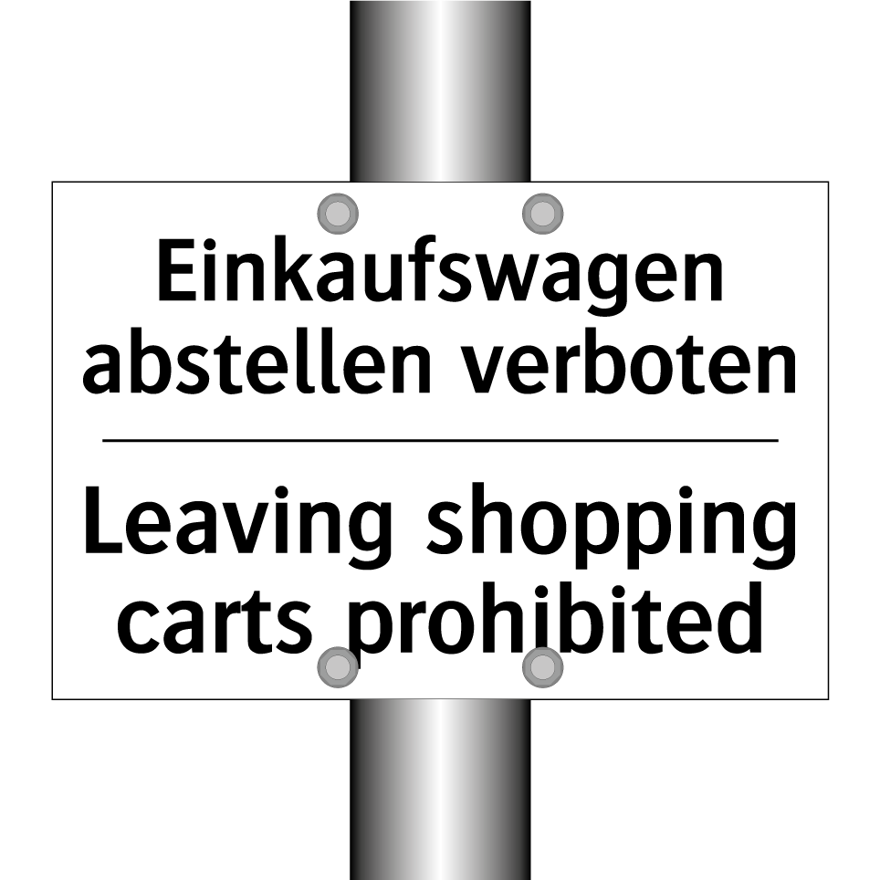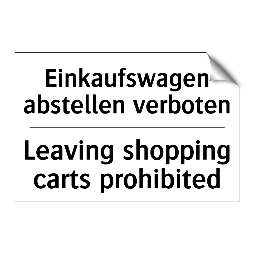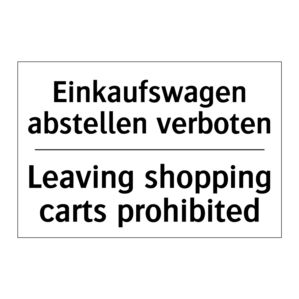 Zweisprachiges Verbotsschild mit deutschem Text Einkaufswagen abstellen verboten und englischem Text Leaving shopping carts prohibited