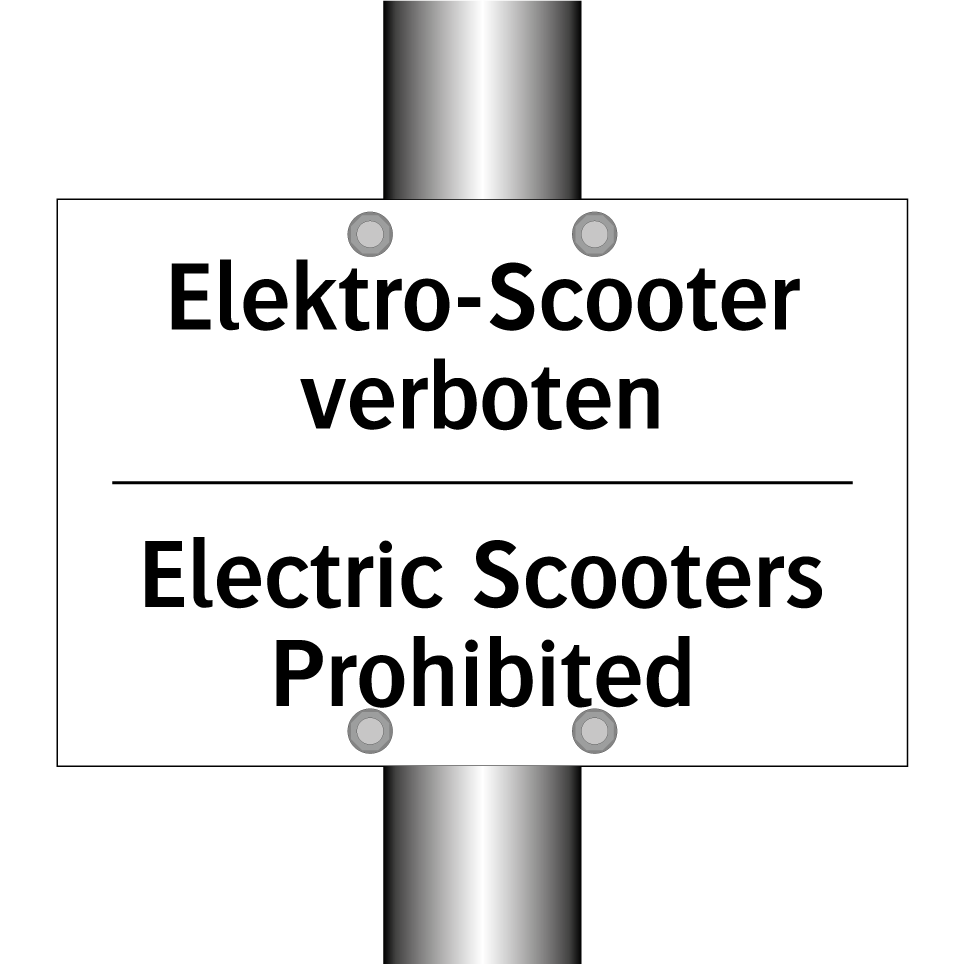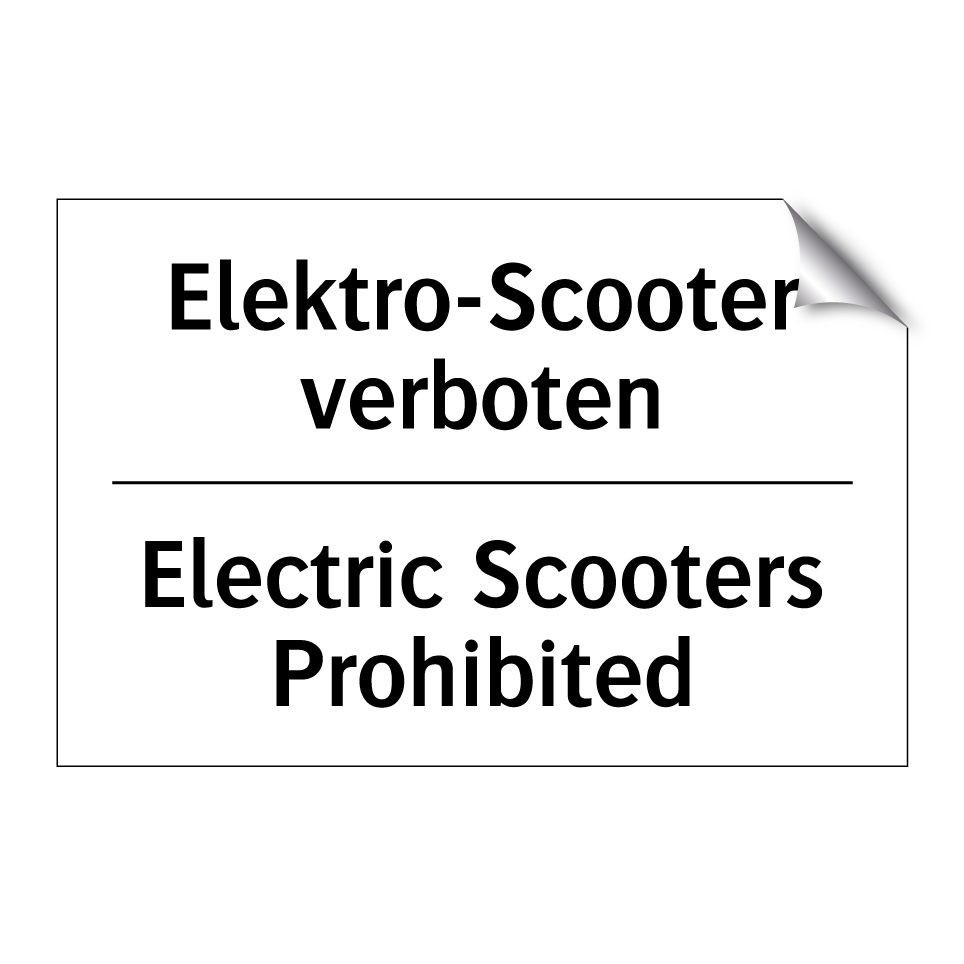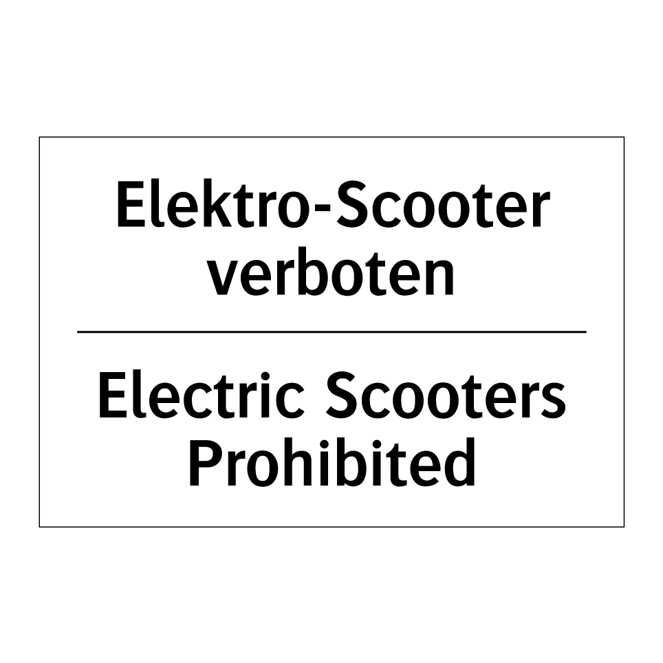 Zweisprachiges Verbotsschild mit deutschem Text Elektro-Scooter verboten und englischem Text Electric Scooters Prohibited