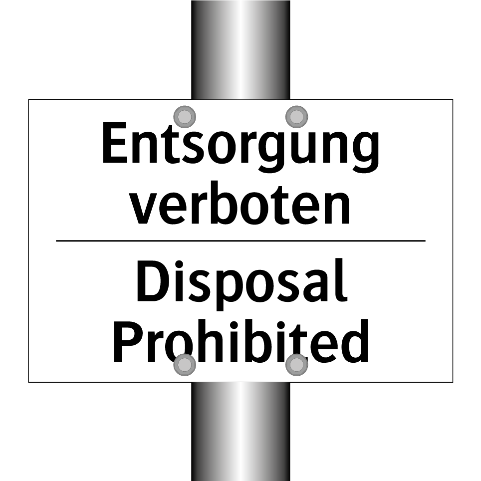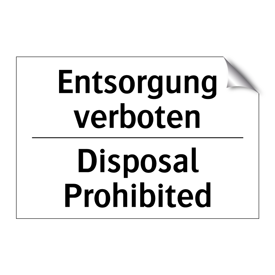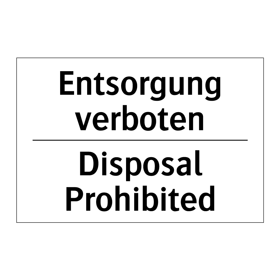 Zweisprachiges Verbotsschild mit deutschem Text Entsorgung verboten und englischem Text Disposal Prohibited