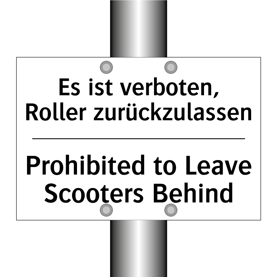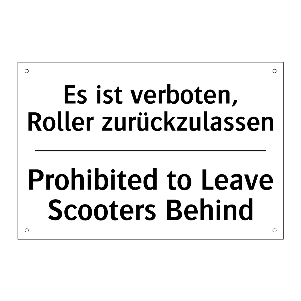 Zweisprachiges Verbotsschild mit deutschem Text Es ist verboten, Roller zurückzulassen und englischem Text Prohibited to Leave Scooters Behind