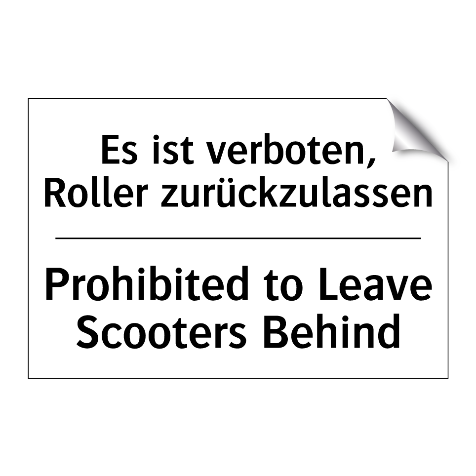 Diese zweisprachige Verbotsschild ist ideal für Orte, an denen das Abstellen von Rollern unerwünscht ist. Mit klarer, schwarzer Schrift auf weißem Hintergrund informiert sie sowohl auf Deutsch als auch auf Englisch über das Verbot, Roller zurückzulassen. Diese mehrsprachige Kommunikation ist besonders vorteilhaft in internationalen Umgebungen, wie Flughäfen, Bahnhöfen oder touristischen Hotspots, wo Besucher aus verschiedenen Ländern aufeinandertreffen. Die Verbotsschilder können an Eingängen, in Parkhäusern oder an öffentlichen Plätzen angebracht werden, um sicherzustellen, dass die Botschaft klar und deutlich wahrgenommen wird. Durch die Verwendung von zwei Sprachen wird die Reichweite und Effektivität der Botschaft erheblich gesteigert.