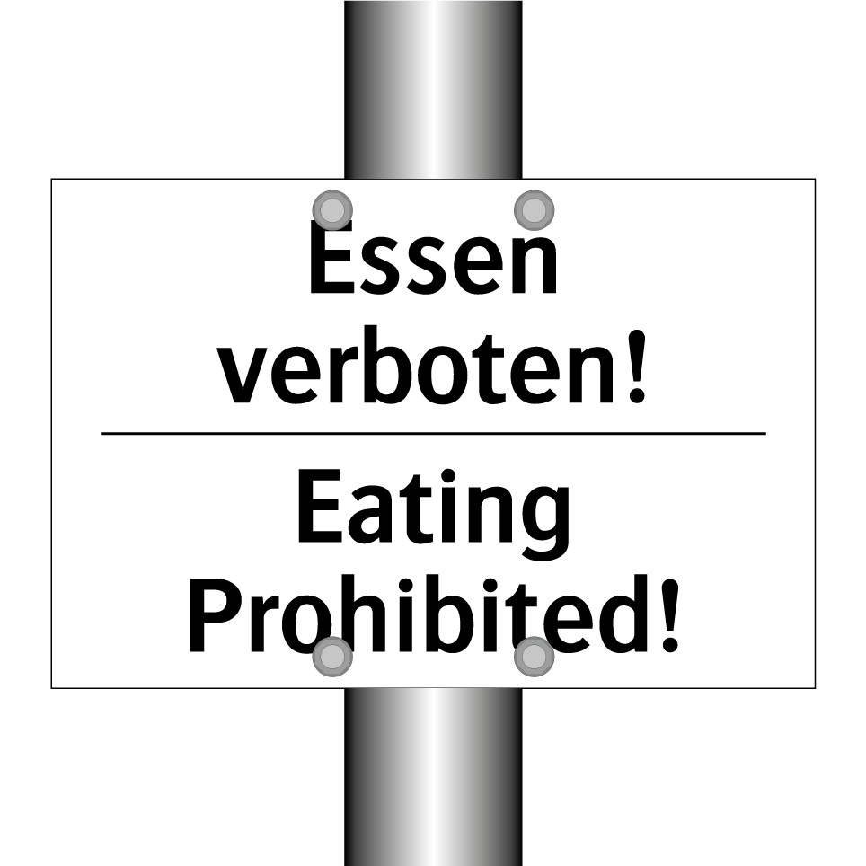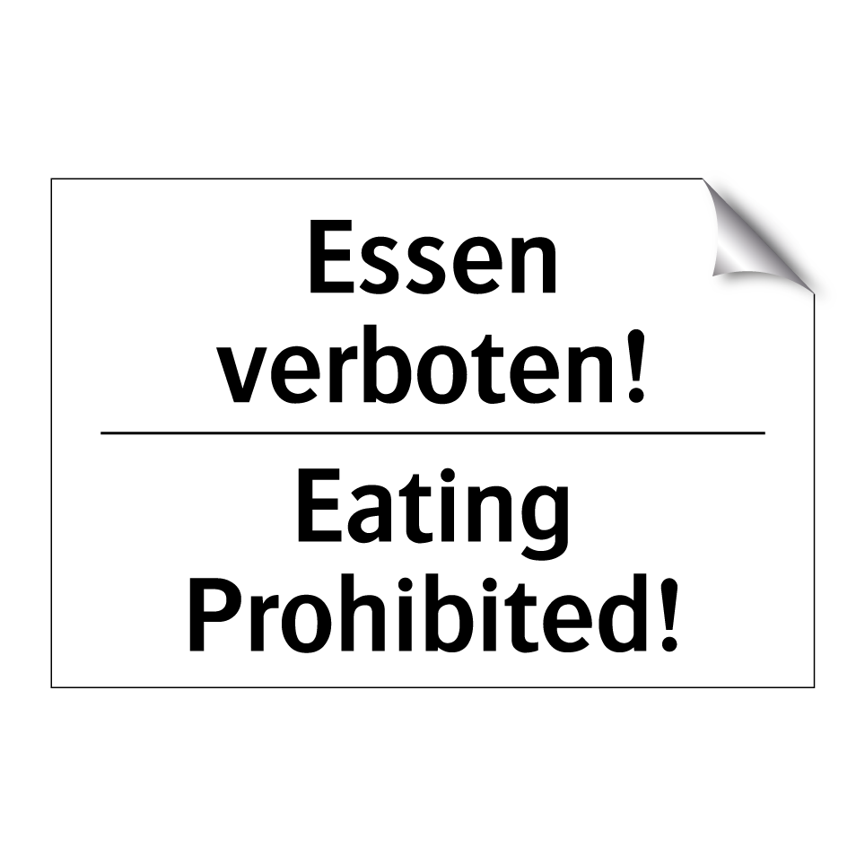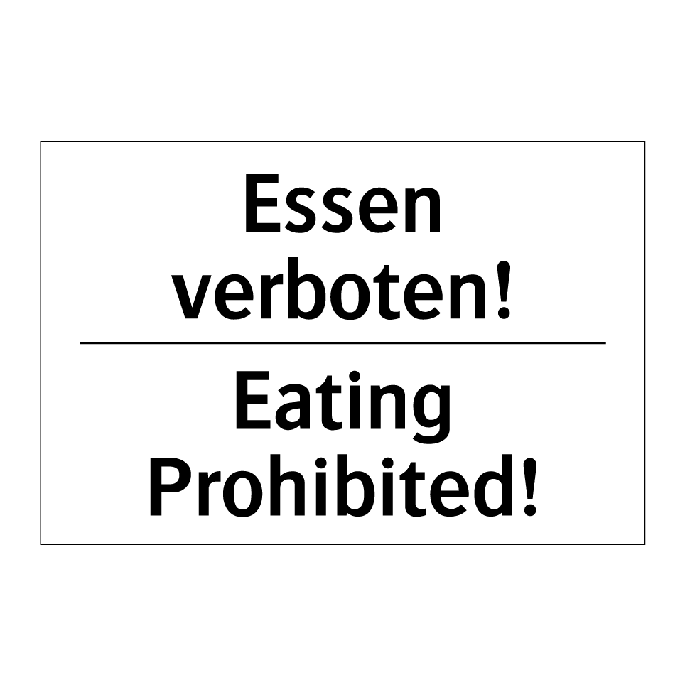 Zweisprachiges Verbotsschild mit deutschem Text Essen verboten! und englischem Text Eating Prohibited!