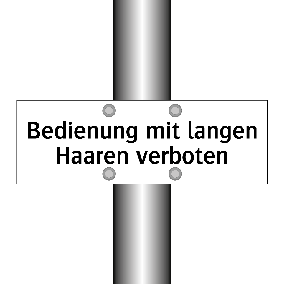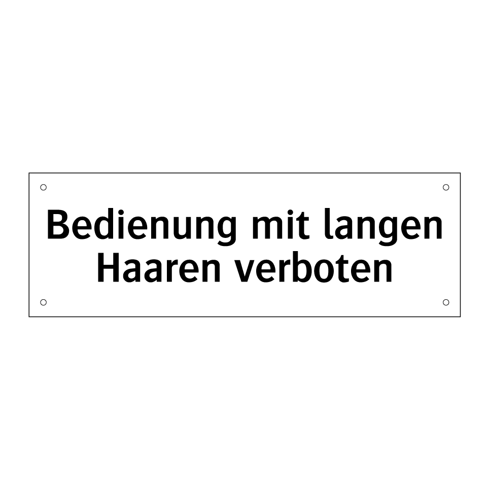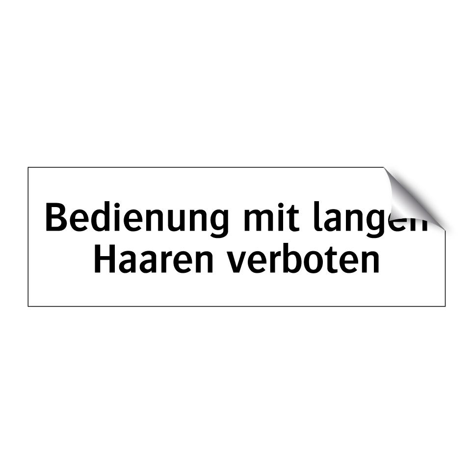 Verbotsschild mit dem Text Bedienung mit langen Haaren verboten