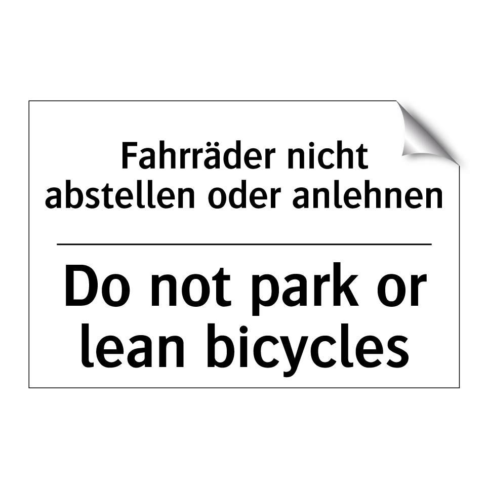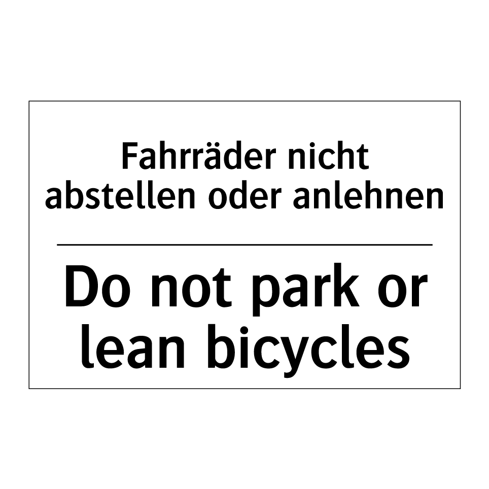 Entdecken Sie die Vielseitigkeit dieser Verbotsschild, die sowohl auf Deutsch als auch auf Englisch gestaltet ist. Diese zweisprachige Gestaltung sorgt dafür, dass die Botschaft klar und verständlich für ein breites Publikum ist. Ideal für den Einsatz in Bereichen, in denen das Abstellen oder Anlehnen von Fahrrädern unerwünscht ist, wie zum Beispiel vor Geschäften, in Wohnanlagen oder an öffentlichen Plätzen. Die klare und prägnante Formulierung hilft, Missverständnisse zu vermeiden und sorgt für Ordnung und Sicherheit. Platzieren Sie diese Verbotsschild an gut sichtbaren Stellen, um sicherzustellen, dass die Anweisungen befolgt werden.