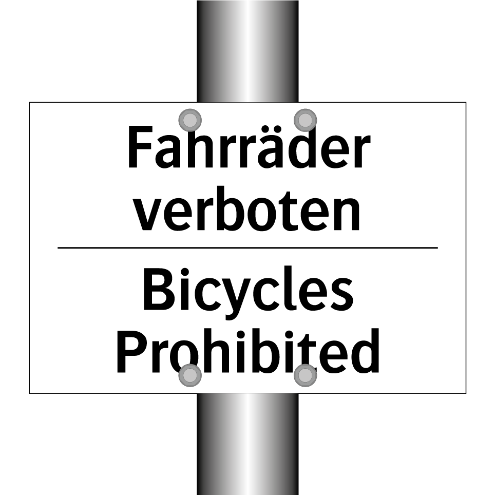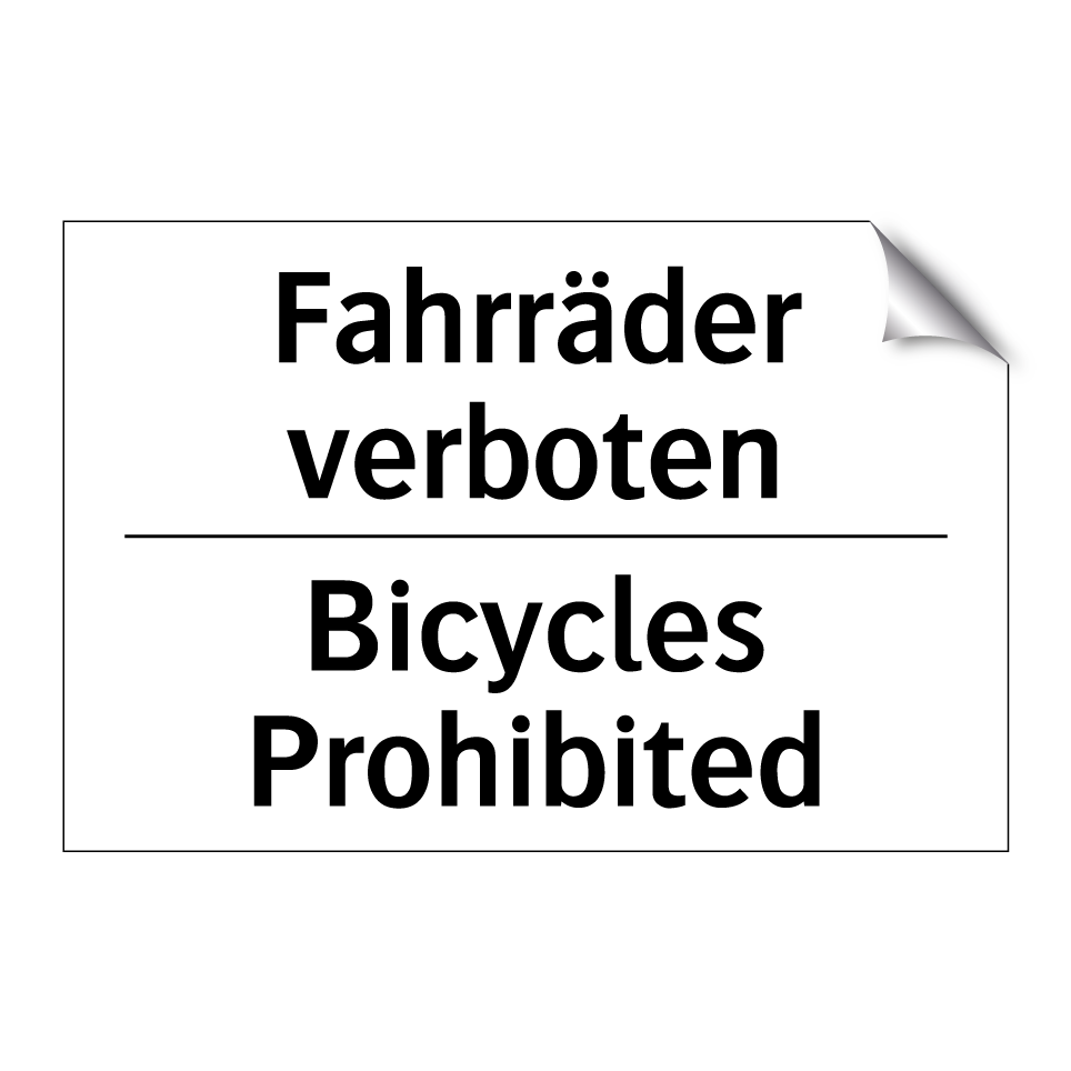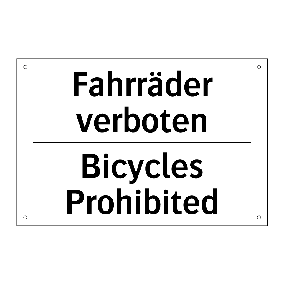 Zweisprachiges Verbotsschild mit deutschem Text Fahrräder verboten und englischem Text Bicycles Prohibited