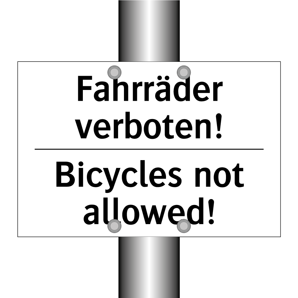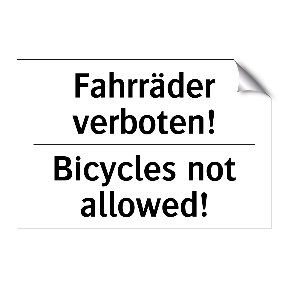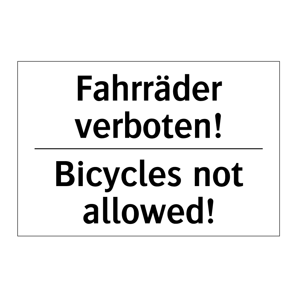 Zweisprachiges Verbotsschild mit deutschem Text Fahrräder verboten! und englischem Text Bicycles not allowed!