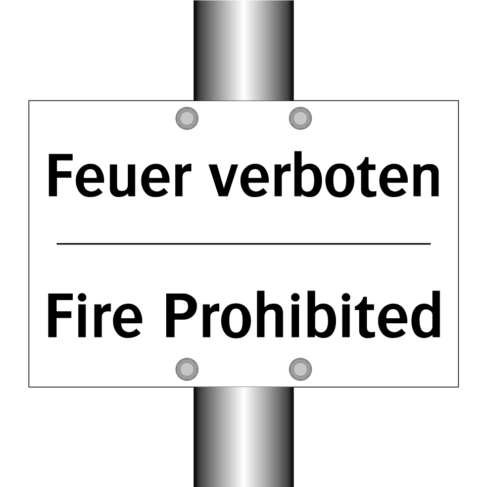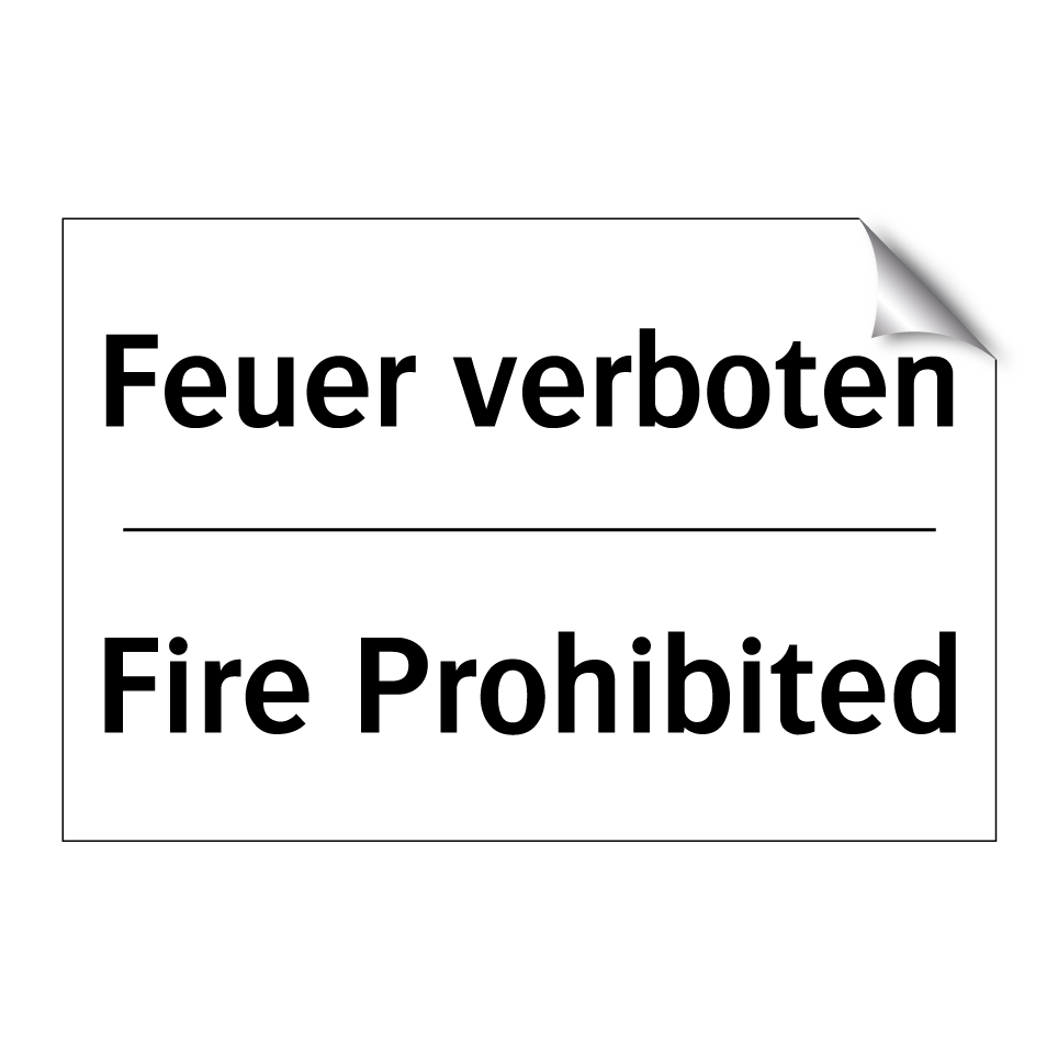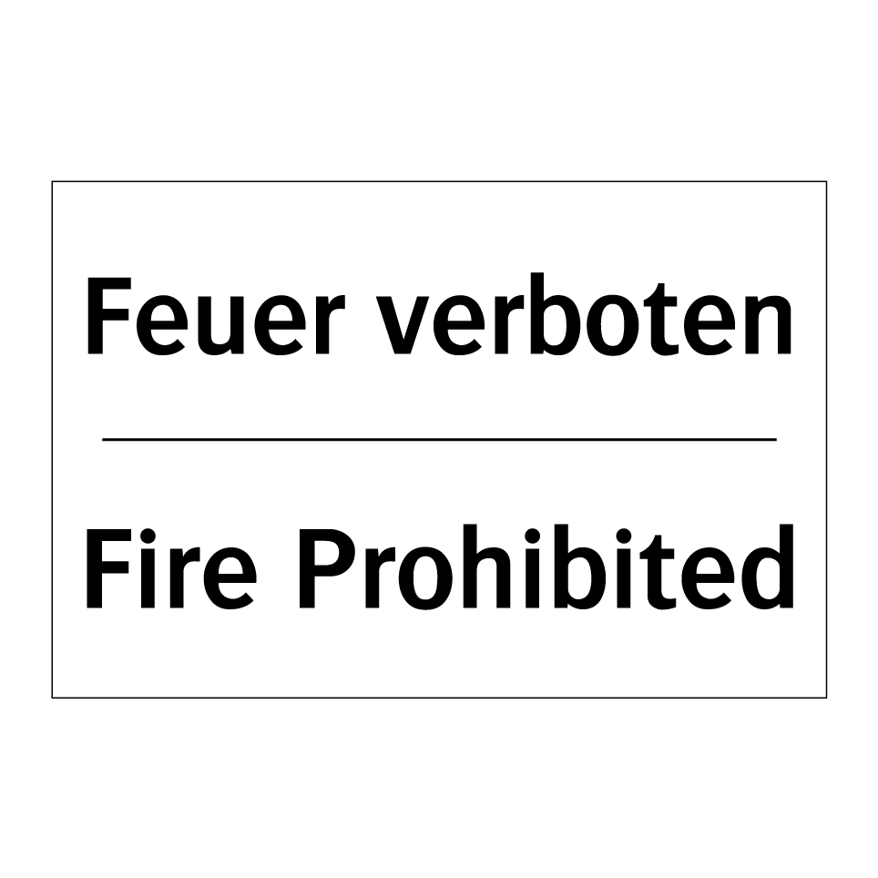 Zweisprachiges Verbotsschild mit deutschem Text Feuer verboten und englischem Text Fire Prohibited
