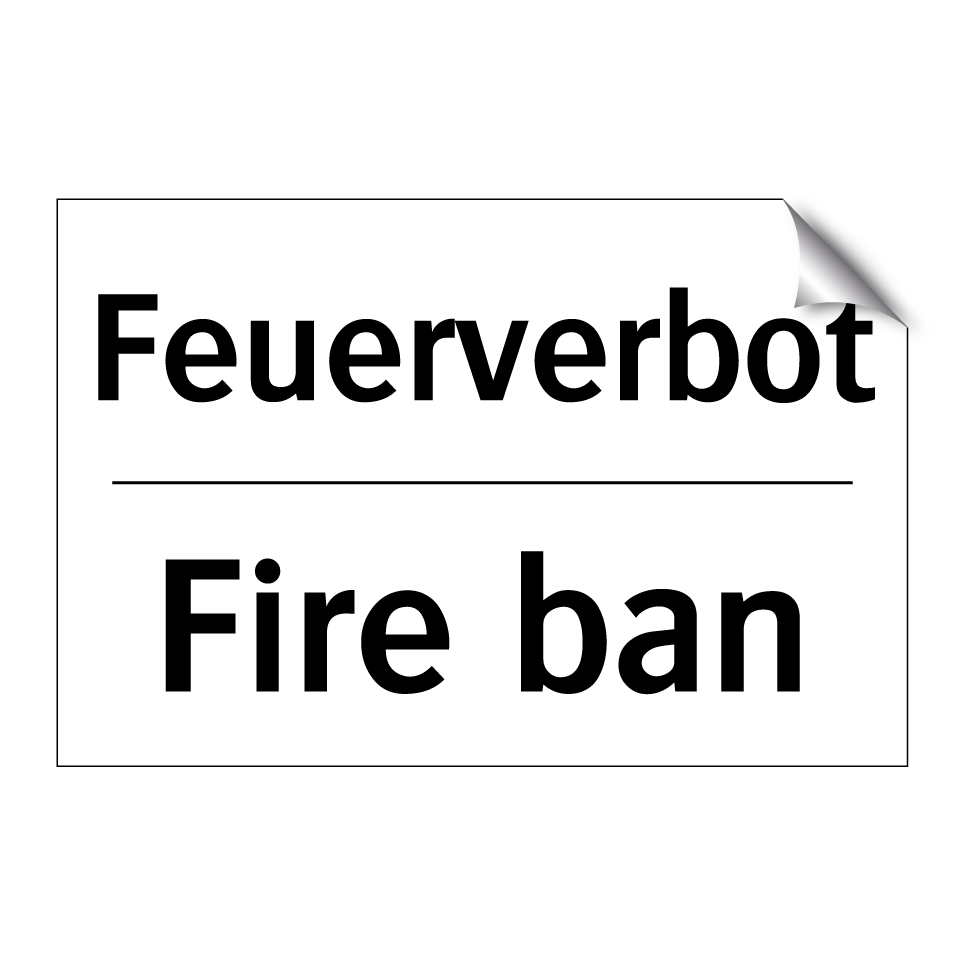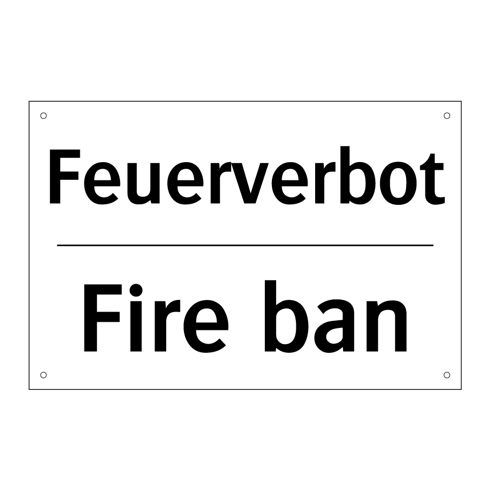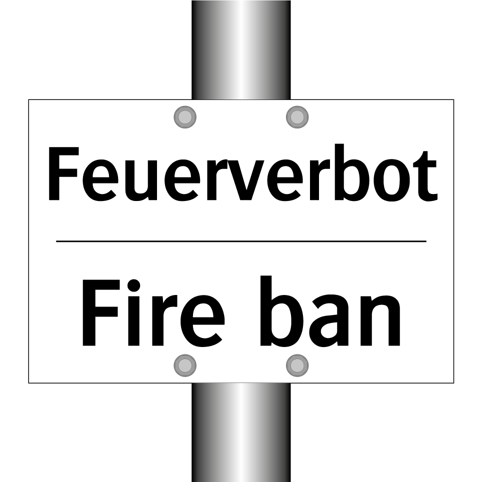 Zweisprachiges Verbotsschild mit deutschem Text Feuerverbot und englischem Text Fire ban