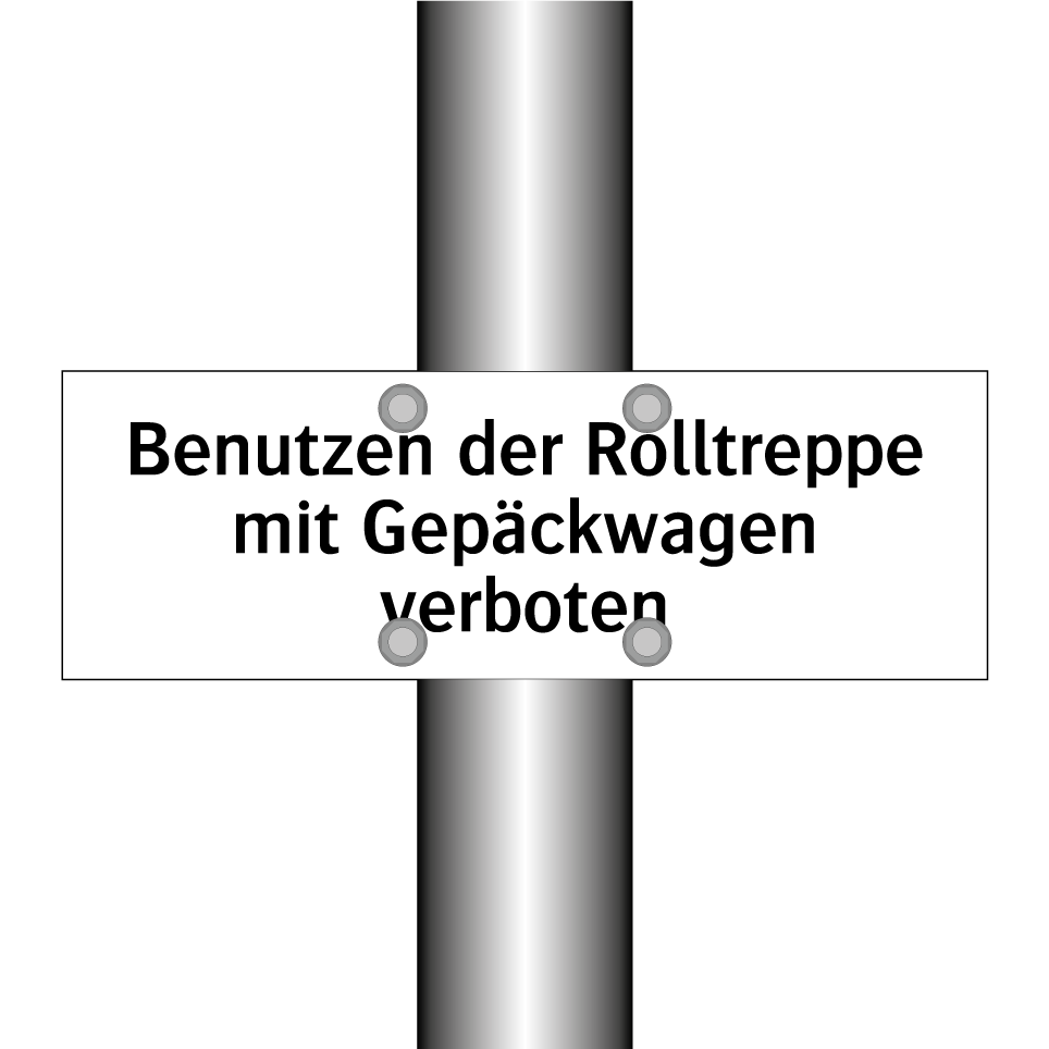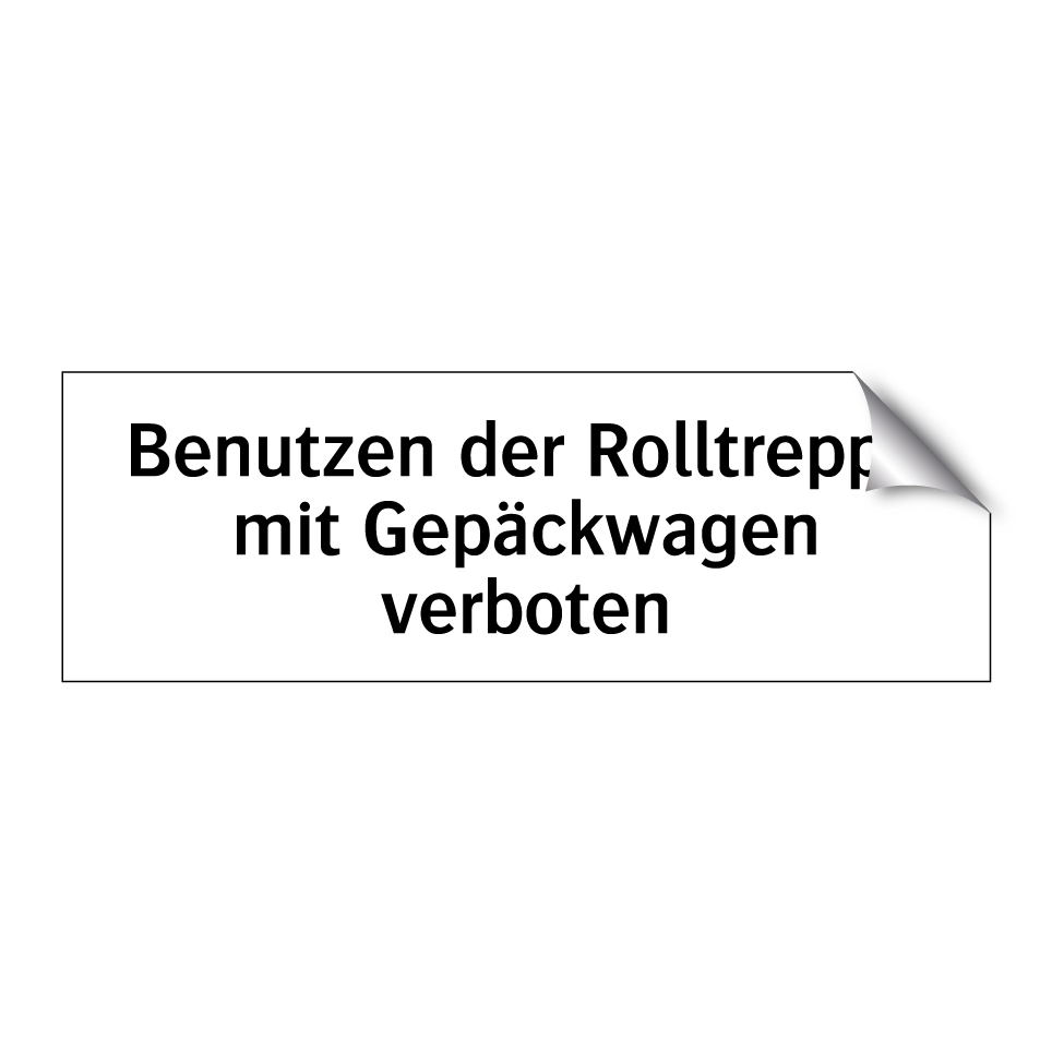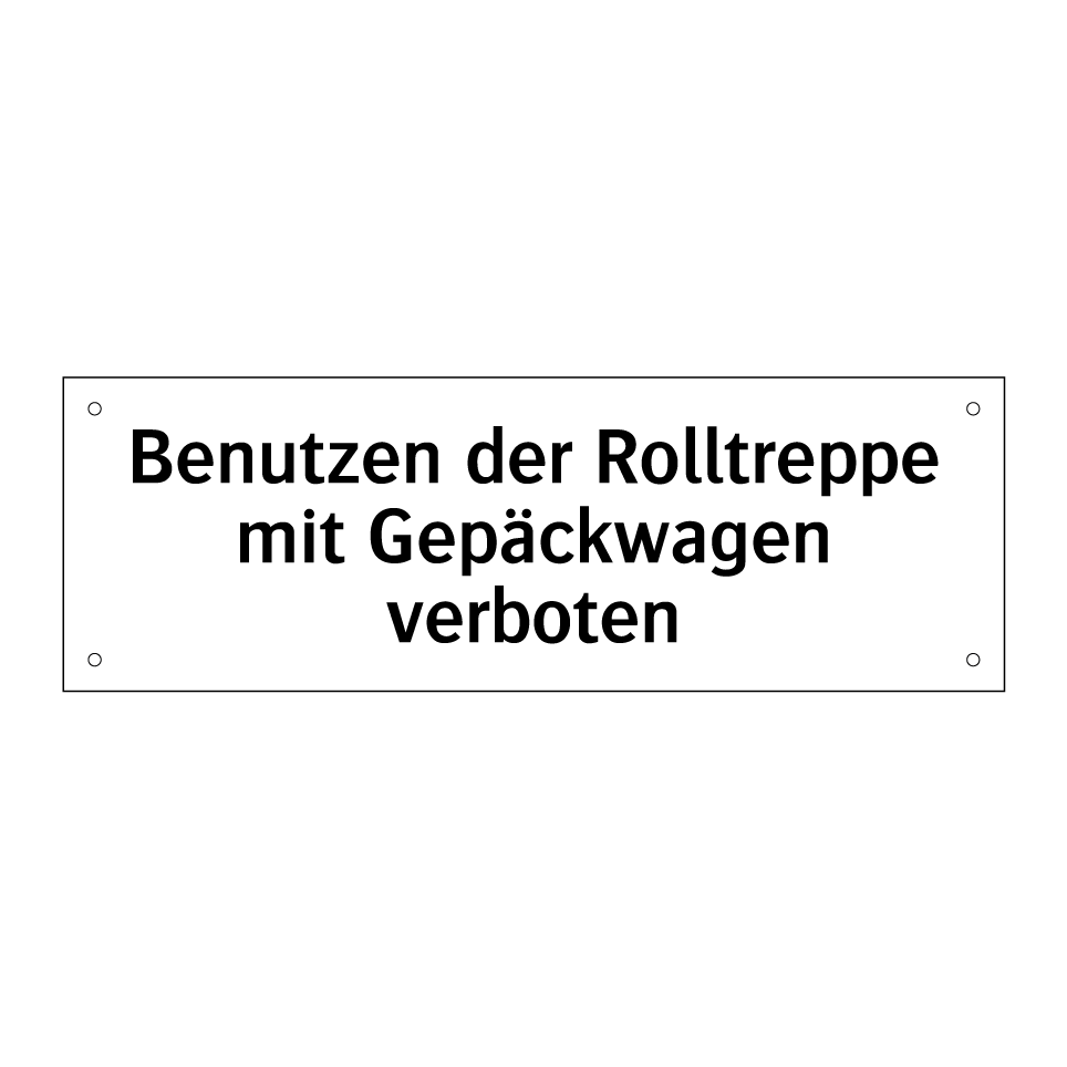 Verbotsschild mit dem Text Benutzen der Rolltreppe mit Gepäckwagen verboten