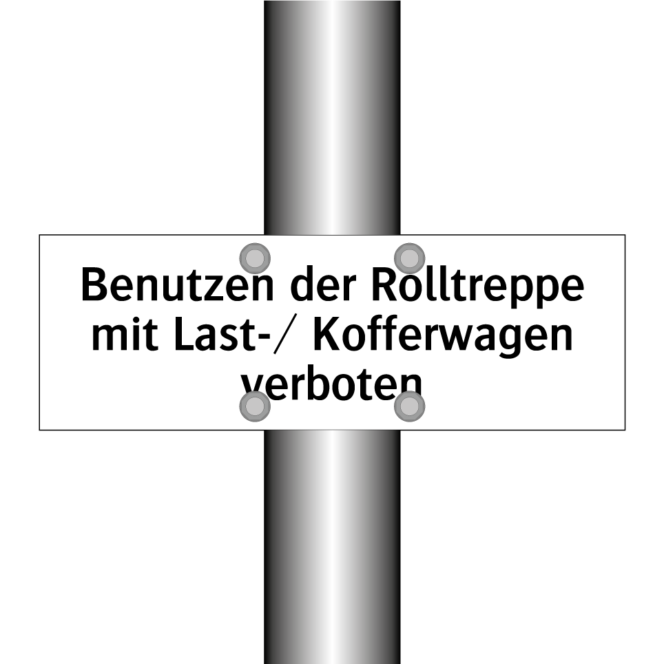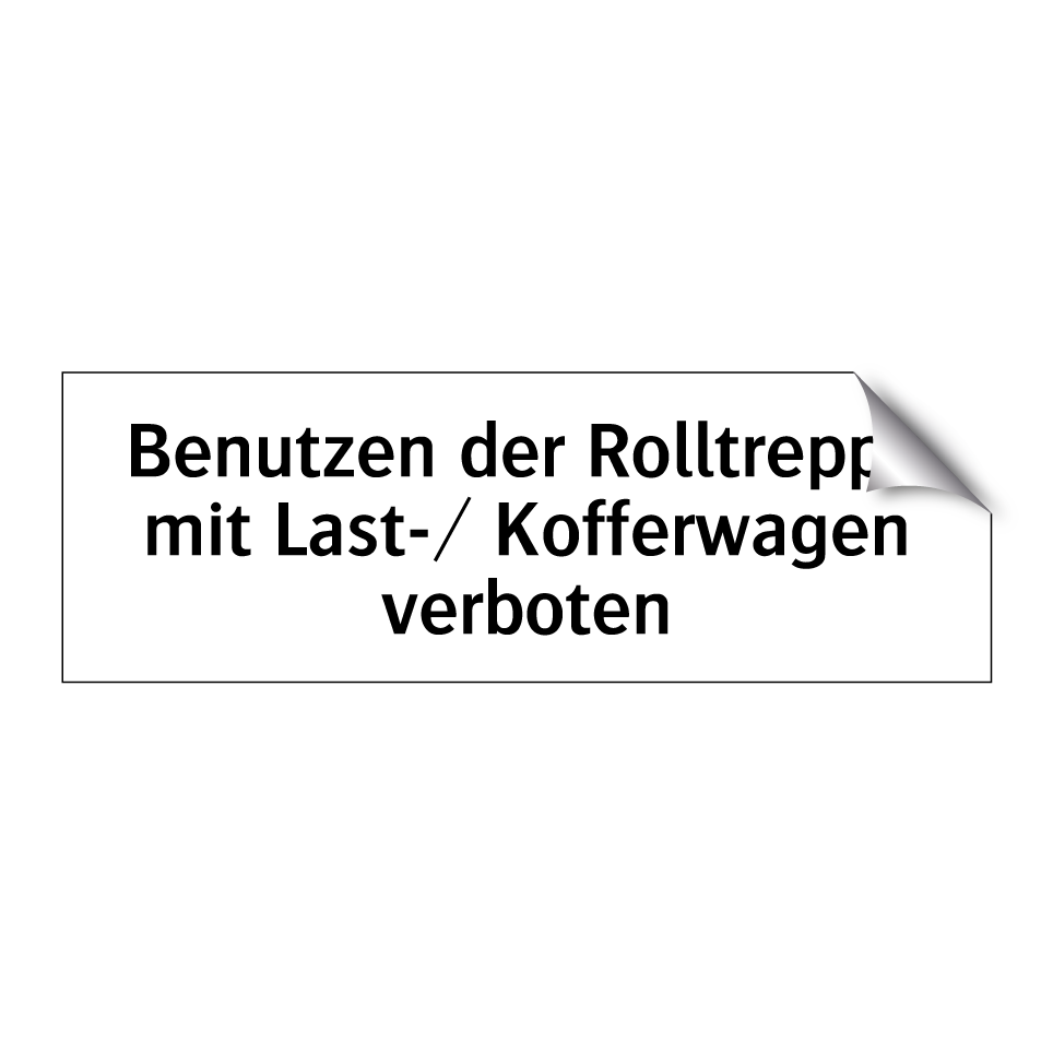 Verbotsschild mit dem Text Benutzen der Rolltreppe mit Last-/ Kofferwagen verboten