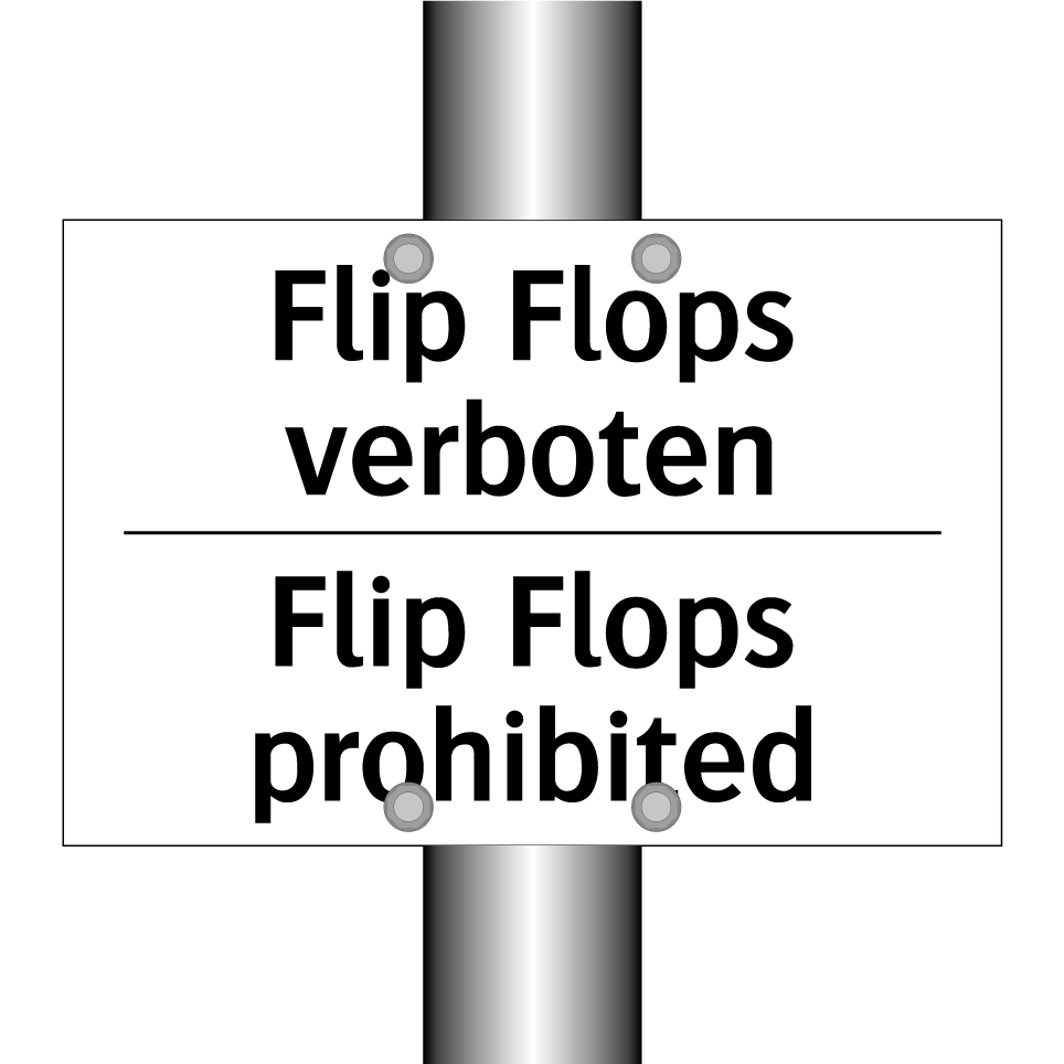 Zweisprachiges Verbotsschild mit deutschem Text Flip Flops verboten und englischem Text Flip Flops prohibited